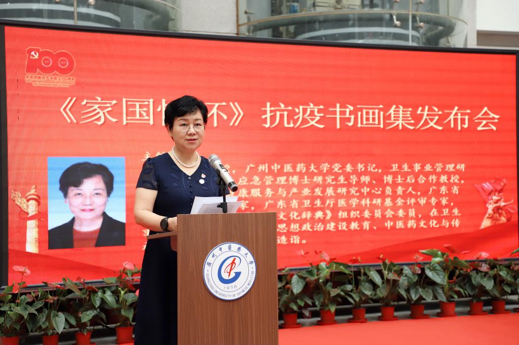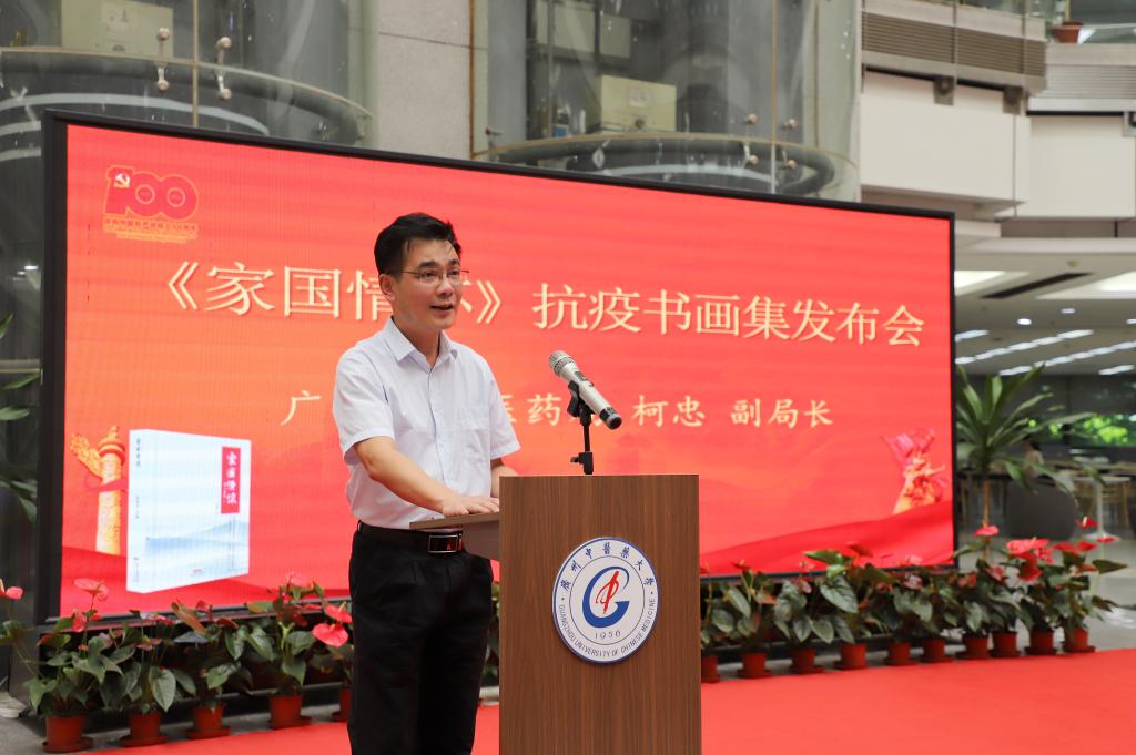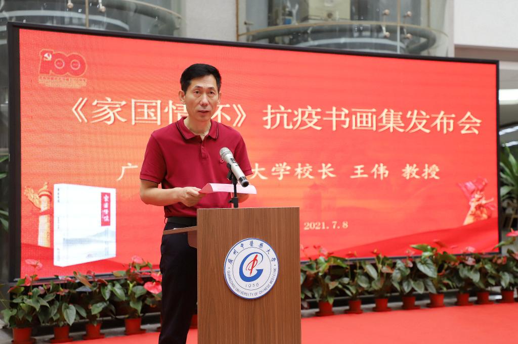 7月8日上午,《家国情怀》抗疫书画集新书发布会暨“中国共产党与中医百年”研讨会在图书馆举行。广东省中医药局副局长柯忠,广东人民出版社社长肖风华,学校党委书记张建华,校长王伟等领导以及校内外中医医史、中共党史专家和嘉宾约100人出席了活动。