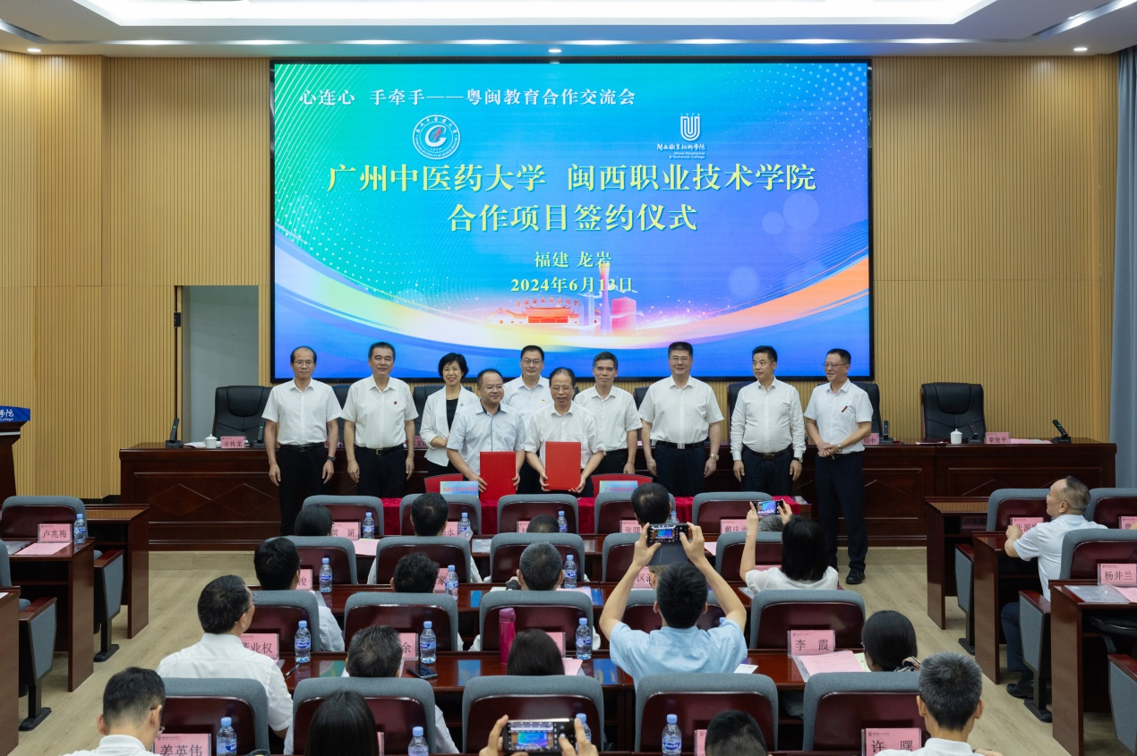 6月13日,闽粤交流合作会在闽西职业技术学院举行,广东省教育厅党组成员、副厅长程大欣,广东省教育厅二级巡视员蔡文雅,福建省教育厅专职副总督学黄建顺,学校党委书记陈文锋、副校长刘中秋,龙岩市教育工委书记王传龙,闽西职业技术学院党委书记卢伟耀、党委副书记、校长梁俊平等出席活动。