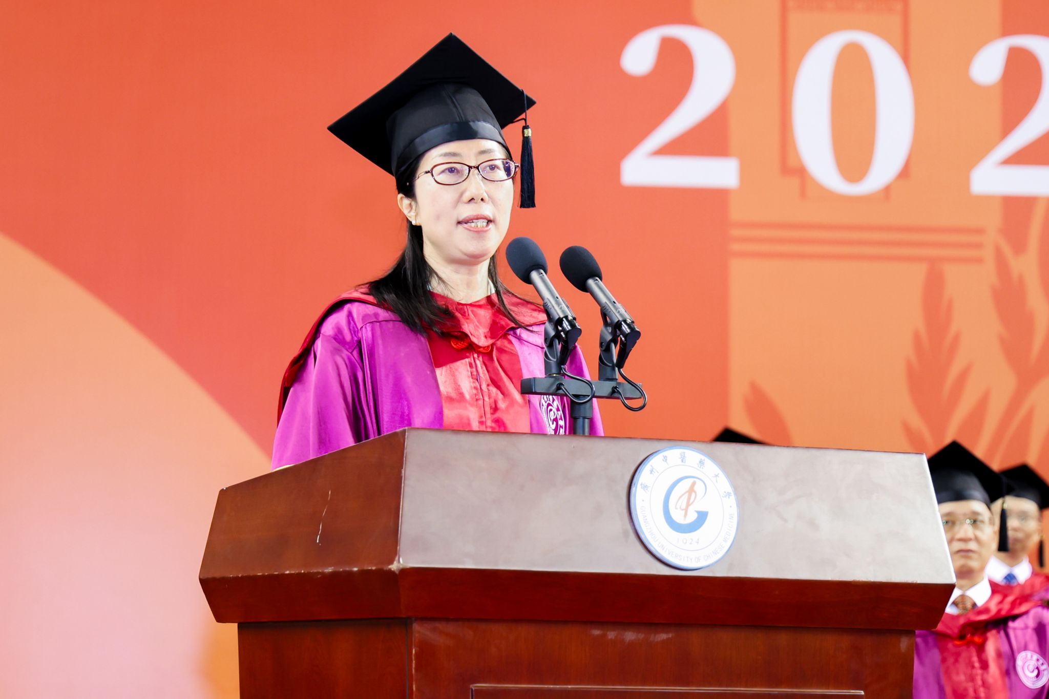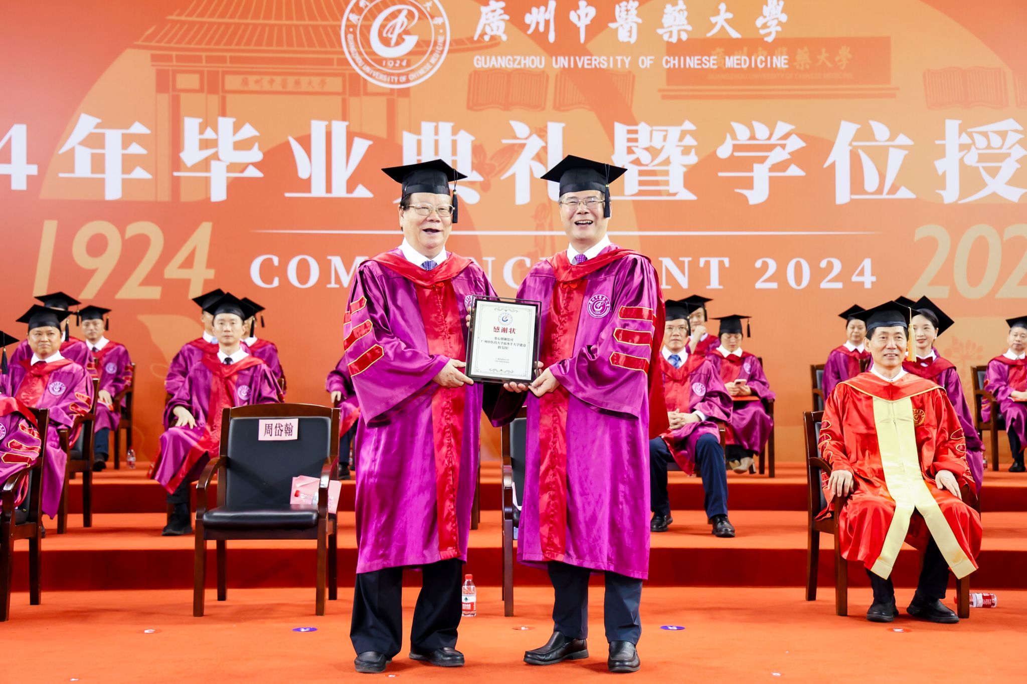 国医大师周岱翰教授,全国名中医欧阳惠卿教授,学校党委书记陈文锋,党委副书记、校长王伟,党委副书记邱亚洪,副校长潘华峰、林彬、张忠德、刘中秋、王宏斌,纪委书记林奕娇等出席典礼。毕业典礼由邱亚洪主持。