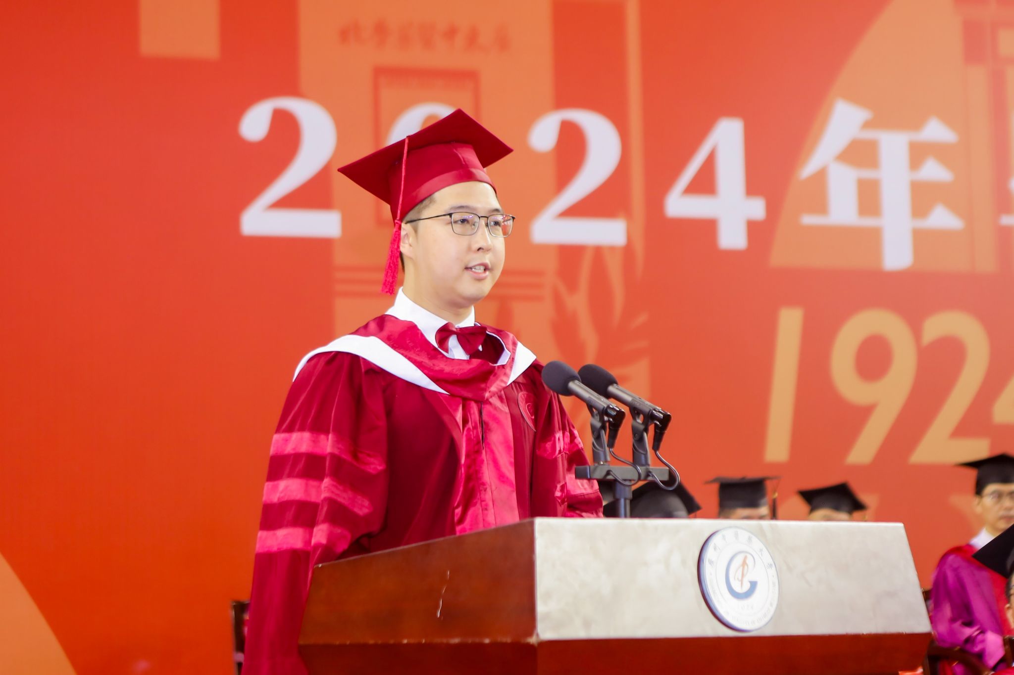 优秀毕业生代表、第二临床医学院中医内科学专业博士研究生王睿弘回忆了他在学校本硕博连读9年的时光,与同学们共勉要树立远大志向,坚持脚踏实地,传承中医文化,续写岐黄新章,常怀感恩之心,勇担时代责任。