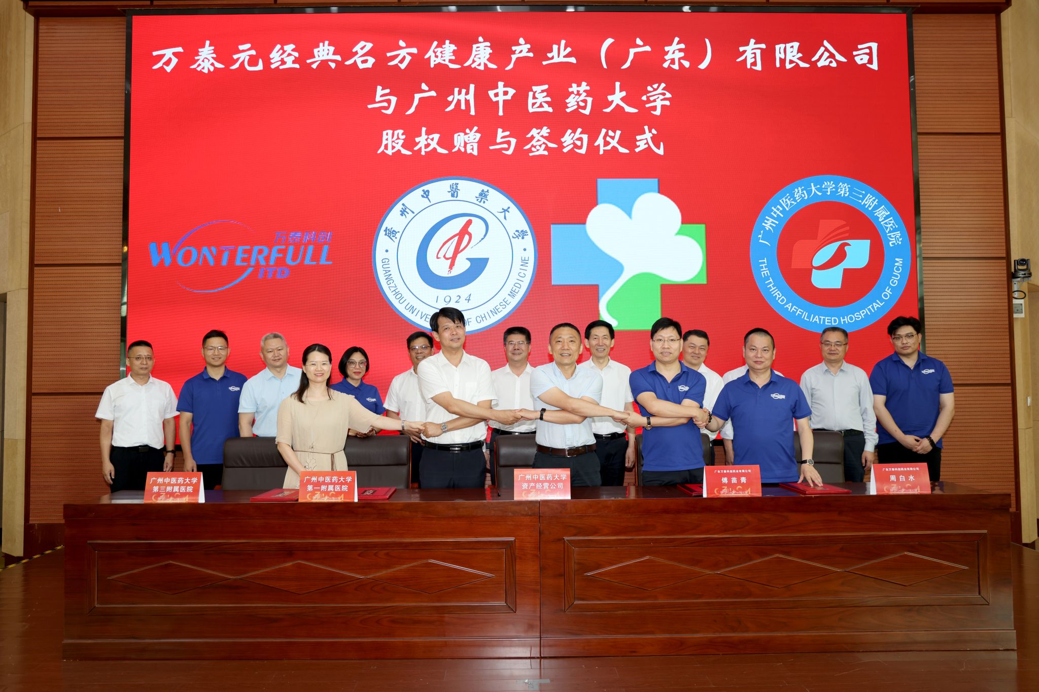 7月1日,在Beat365中文官方网站100周年校庆来临之际,万泰元经典名方健康产业(广东)有限公司傅苗青董事长、周白水总经理向Beat365中文官方网站捐赠中山市万泰元药业有限公司100%股权仪式在大学城校区办公楼举行。这是Beat365中文官方网站联合附属医院培育和发展中医药新质生产力,发展高科技实现产业化,为地方经济建设贡献力量的重要举措。