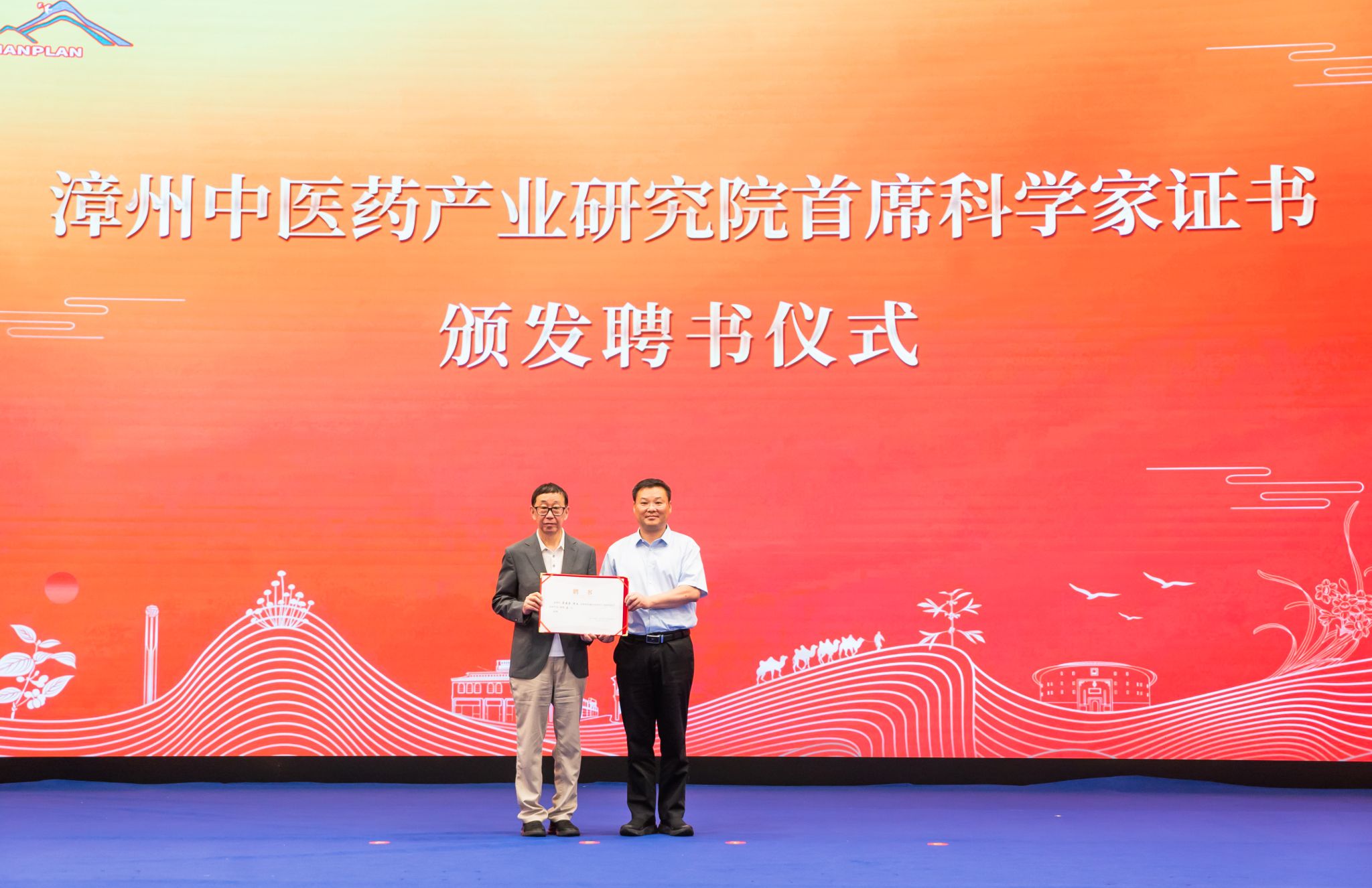 现场还为中国医学科学院药物研究院院长、中国工程院院士蒋建东颁发漳州中医药产业研究院首席科学家证书,为暨南大学首席科学家、药理学家王志国颁发漳州中医药产业研究院学术委员会主任证书。