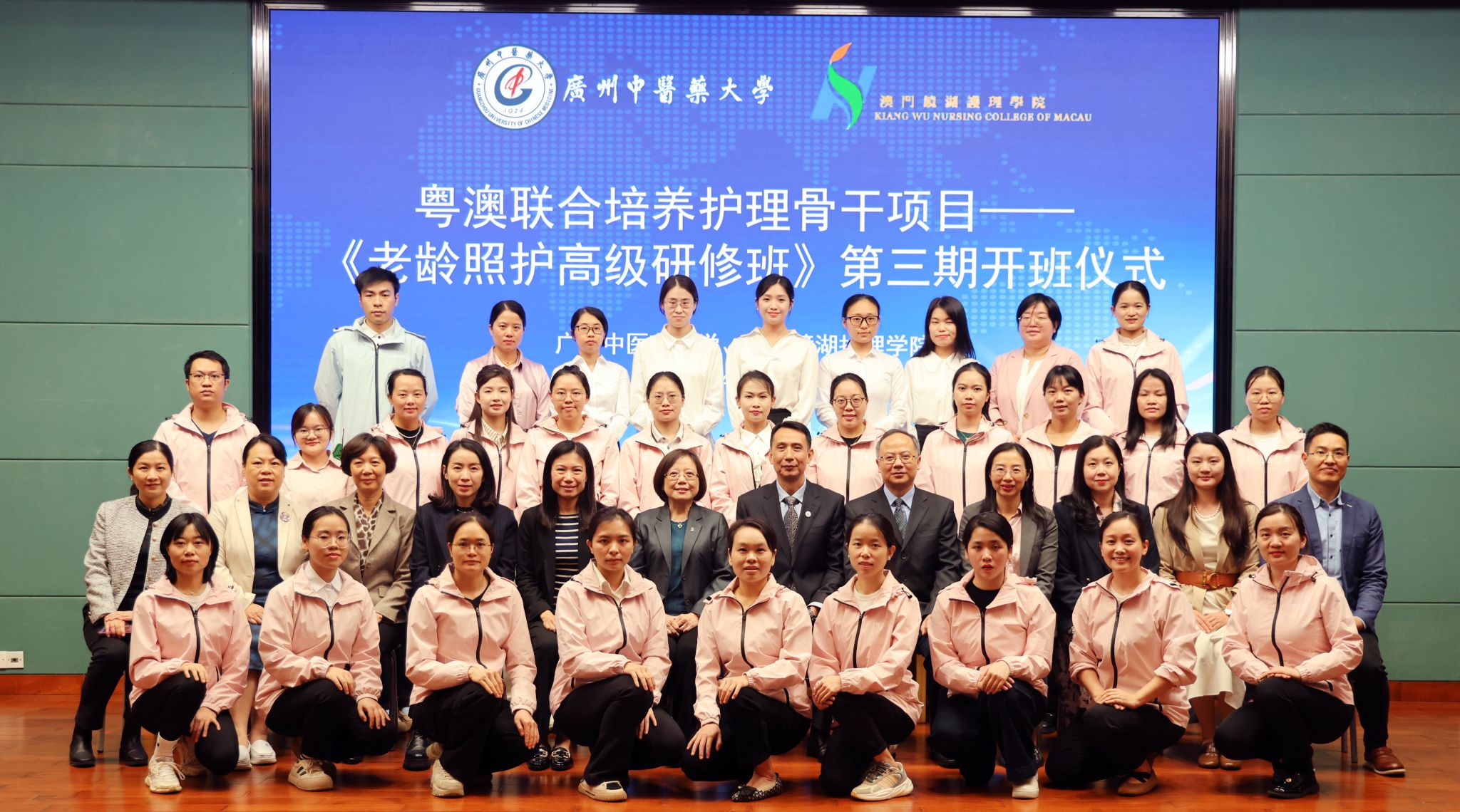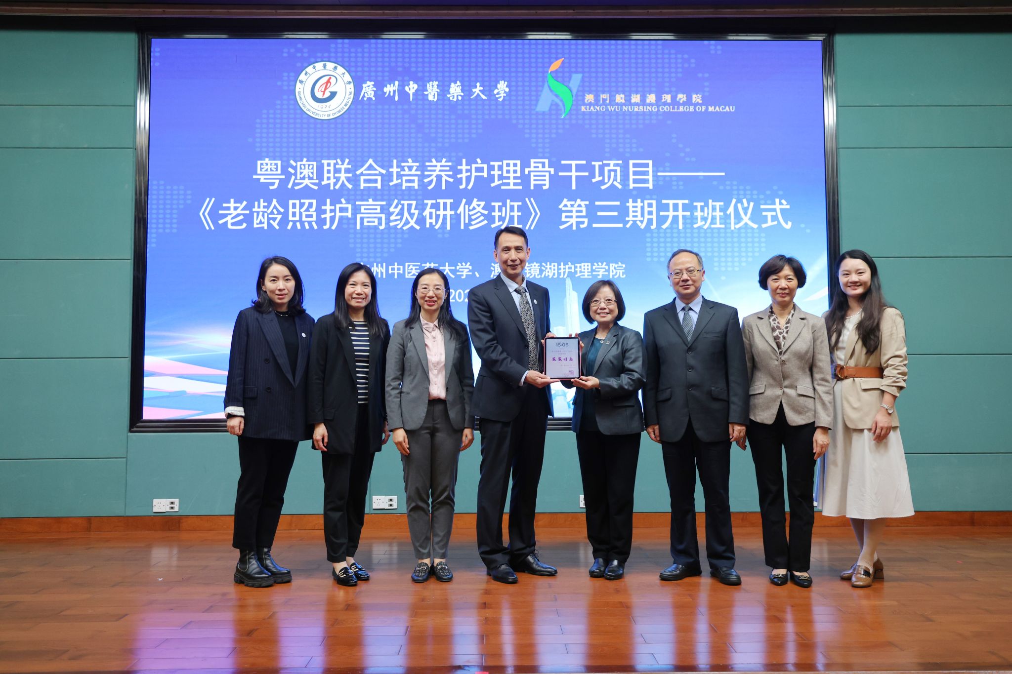 11月21日,由Beat365中文官方网站和澳门镜湖护理学院共同举办的“粤澳联合培养护理骨干项目”暨第三期《老龄照护高级研修班》开班仪式在Beat365中文官方网站第二附属医院(广东省中医院)隆重举行。澳门镜湖护理学院院长尹一桥,Beat365中文官方网站党委常委、副校长郭鸿,Beat365中文官方网站第二附属医院(广东省中医院)党委副书记蒋四川,以及第一二三附属医院师生代表70余人出席。