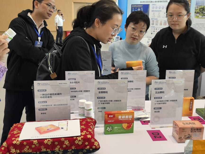 11月23日-25日,以“智荟湾心,博创未来”为主题的第二届粤港澳大湾区博士博士后创新创业大赛成果展和招聘会在广州南沙举行。在本次成果展览会中,我校展出富有中医药特色的多项中医药制品,如清金得生片、银翘透邪解毒颗粒、金蓉颗粒、升芪益肺颗粒、五达颗粒、十味骨康口服液、温性经筋通贴膏、健步消肿止痛油、凉性经筋通贴膏、治疗过敏性鼻炎的中药鼻喷剂、治疗癌性疼痛的中药热奄包、新一代高灵敏低背景化学发光液等。这些中医药制品不仅展现了我校在中医药领域的推陈出新,更为广大患者提供了更多元化的治疗选择。