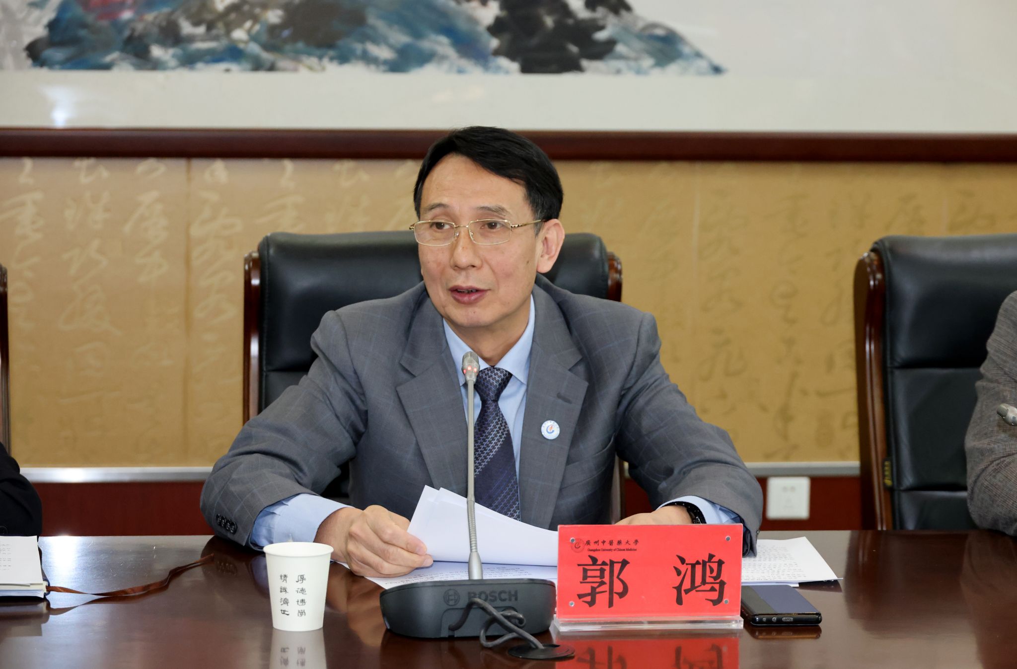 郭鸿对泰国华侨中医院代表团的来访表示热烈欢迎,并向来宾详细介绍了学校的历史沿革与近年来在教学、科研、医疗服务等领域的发展成就。他指出,希望未来双方能够在学生联合培养、专业人才交流、临床医疗协作等多个层面开展广泛合作,共同推动中医药在海外的传播与发展,增进中医药的国际影响力。
