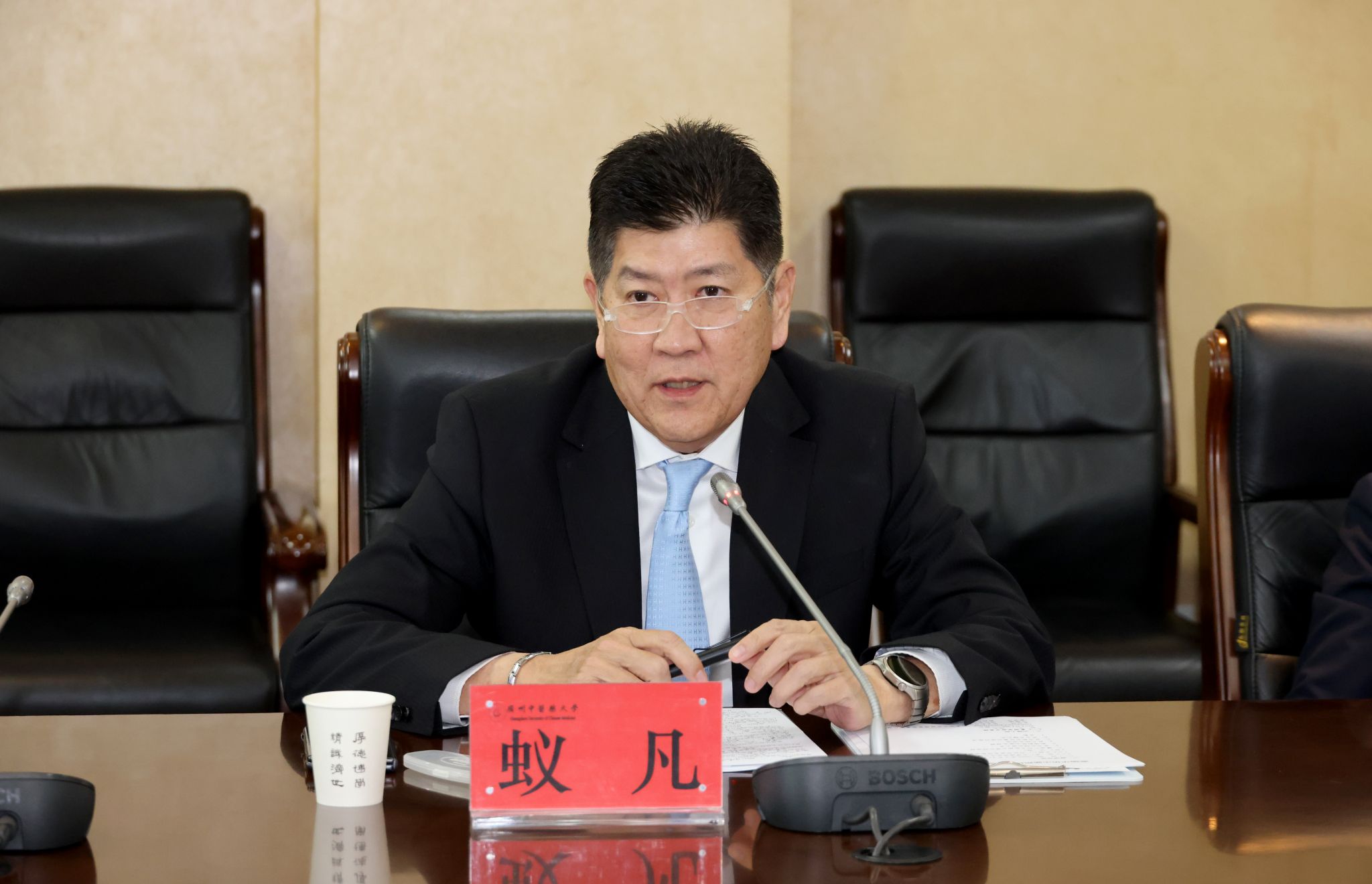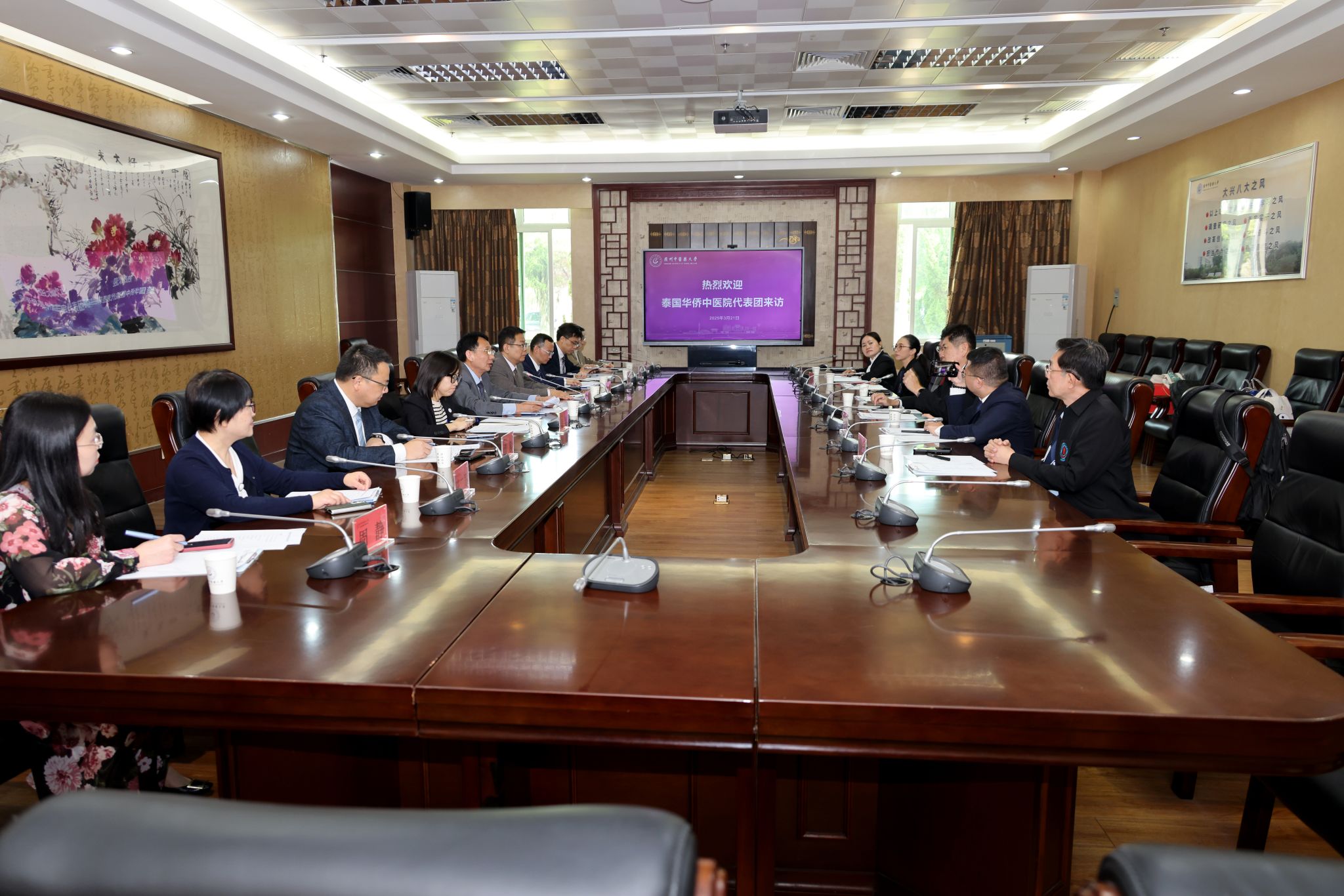 3月21日上午,泰国华侨中医药院长蚁凡率团到访Beat365中文官方网站。学校党委常委、副校长郭鸿会见来宾,研究生院、对外交流合作部、第一附属医院、第二附属医院(广东省中医院)、第三附属医院相关负责同志出席座谈。