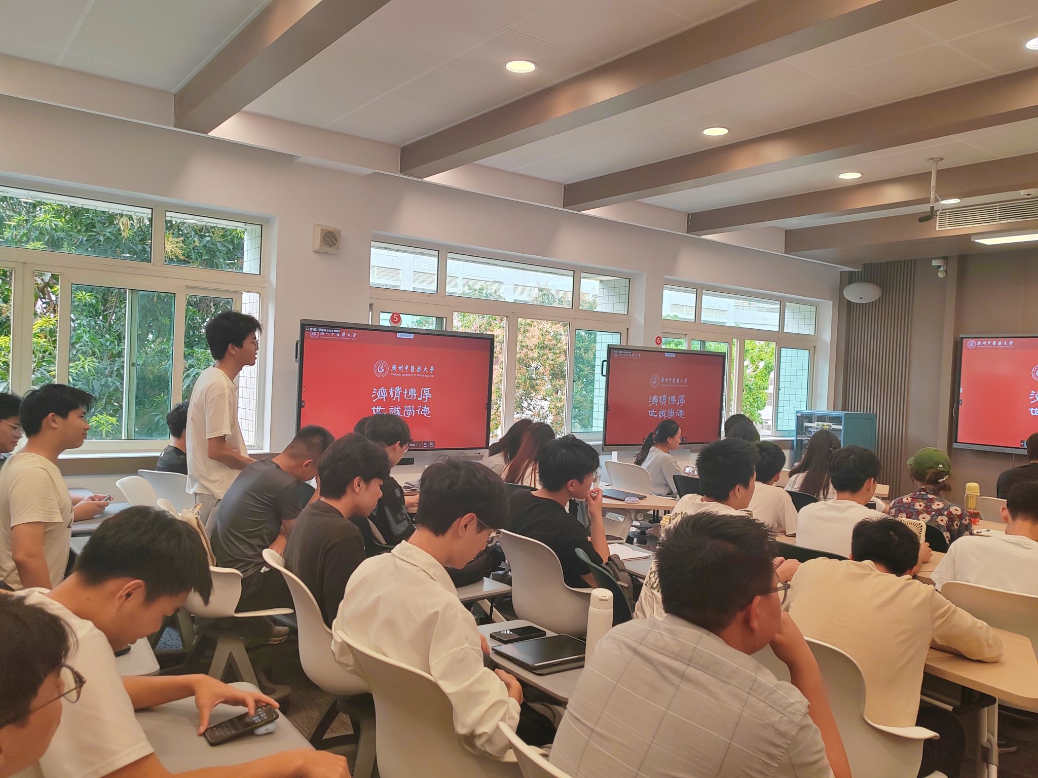 杨荣源寄语医工学子,要牢记总书记的殷切嘱托,坚定文化自信,弘扬“上医医国、先觉觉民”的创校精神,恪守“厚德博学、精诚济世”的校训文化,努力锤炼自身本领,用现代的科学技术深入挖掘中医药宝库,以现代语言体系阐释中医药奥秘,推动中医药国际化,促进中医药文化焕发时代光彩,为推进中国式现代化贡献广中医人的青春力量。