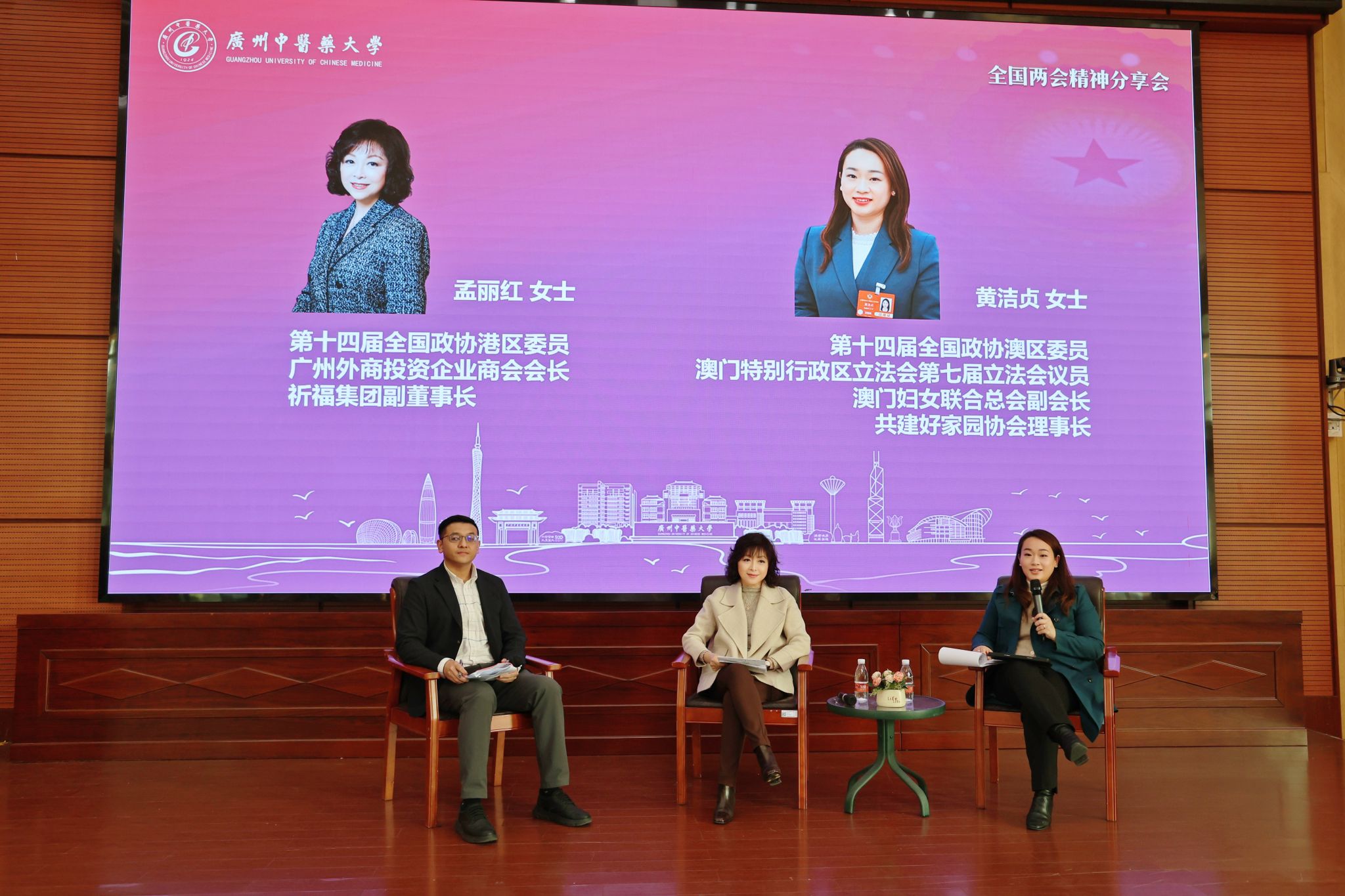 为深入学习贯彻2025年全国两会精神,引导港澳学生深刻理解国家发展战略,4月1日下午,全国两会精神分享会在Beat365中文官方网站大学城校区举行。港区全国政协委员孟丽红、澳区全国政协委员黄洁贞作分享,我校香港、澳门学生、广东高校香港学生联合会、澳门学生联合会代表等200多人现场参与。