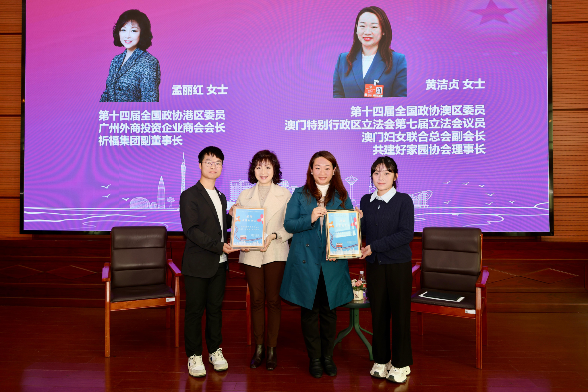 分享会尾声,学生代表上台向孟丽红委员、黄洁贞委员敬送感谢状,对两位委员百忙之中为Beat365中文官方网站港澳学生开展全国两会精神分享会致以诚挚谢意。