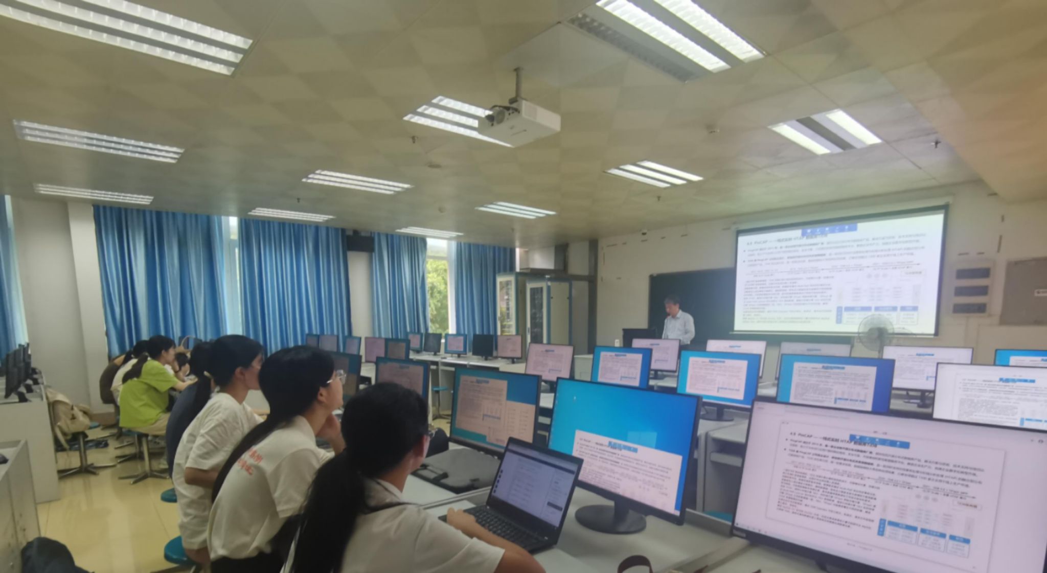 同日下午,医工楼301课室开展着一场面对面的沉浸式动手实践交流。院长赵文光通过“全流程实操+真实案例”的创新模式,指导学生动手操作信创数据库安装配置到性能调优的全过程。