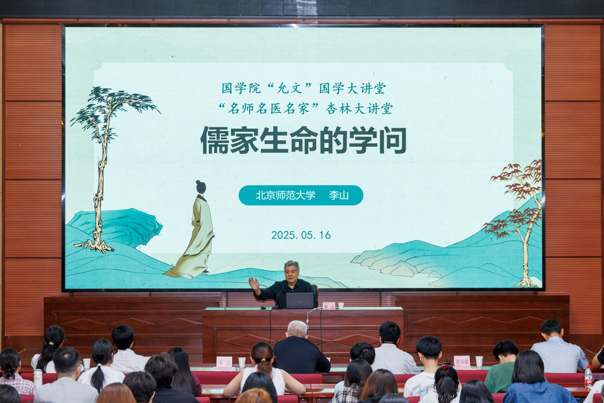 为弘扬中华优秀传统文化,提升学生人文素养,深化国学经典与现代教育的融合,Beat365中文官方网站国学院联合校团委、宣传统战部、教务部、研究生院等举办“允文”国学大讲堂。5月16日下午,“允文”国学大讲堂首场讲座在大学城校区办公楼201学术报告厅举行,特邀北京师范大学文学院教授、《百家讲坛》嘉宾李山教授主讲,以“儒家生命的学问”为主题,深入解读儒家思想对生命价值与人文精神的深刻思考。讲座由校长王宏斌主持。