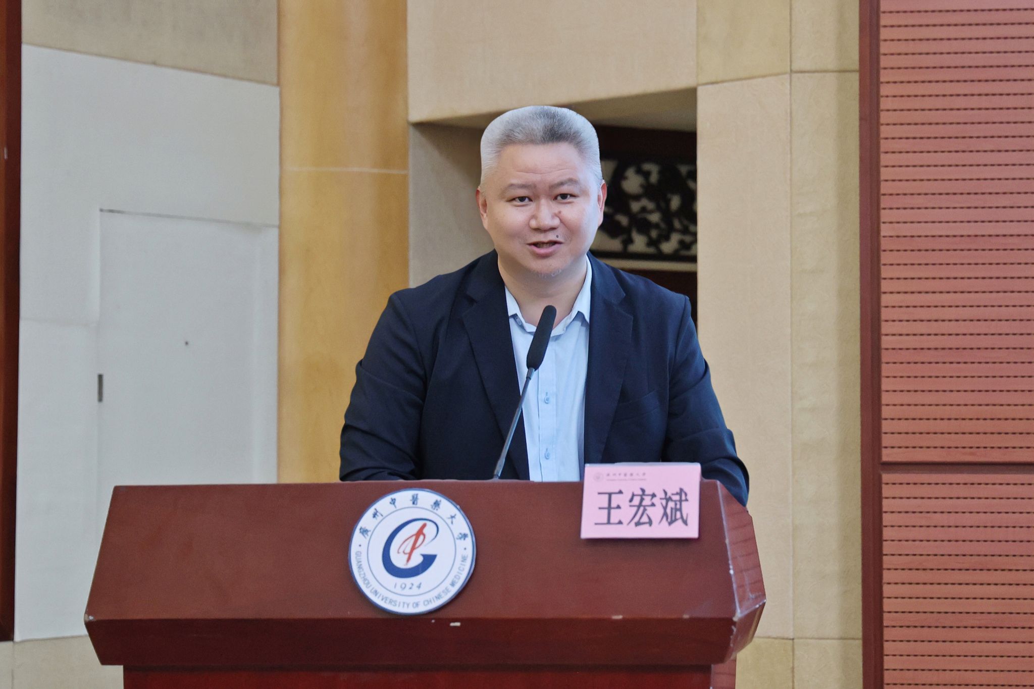 王宏斌在致辞中介绍了“允文”二字的由来及其寓意。他指出,“允文”取自《诗经》“允文允武”,寓意能文能武、文武兼备,旨在以文德润泽生命,以经典涵养心灵。他强调,国学大讲堂的举办不仅是传承中华优秀传统文化的重要举措,更是推动国学智慧与中医药文化交融互鉴的平台、是为新时代青年注入文化自信的精神力量。