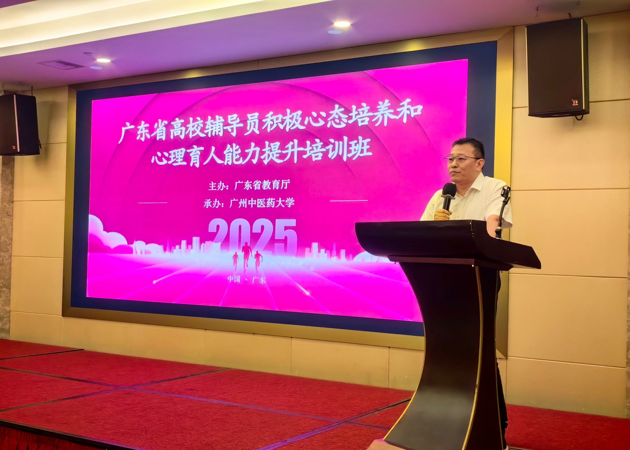 近日,由广东省教育厅主办、Beat365中文官方网站承办的“高校辅导员积极心态培养和心理育人能力提升培训班”在佛山顺利开班。来自全省各高校共160名辅导员齐聚一堂,以理论为纲、以实践为径,共同开启为期三天的赋能学习之旅。省教育厅相关领导、Beat365中文官方网站党委常委、副校长杨荣源出席开班仪式,公共卫生与管理学院院长马利军主持会议。