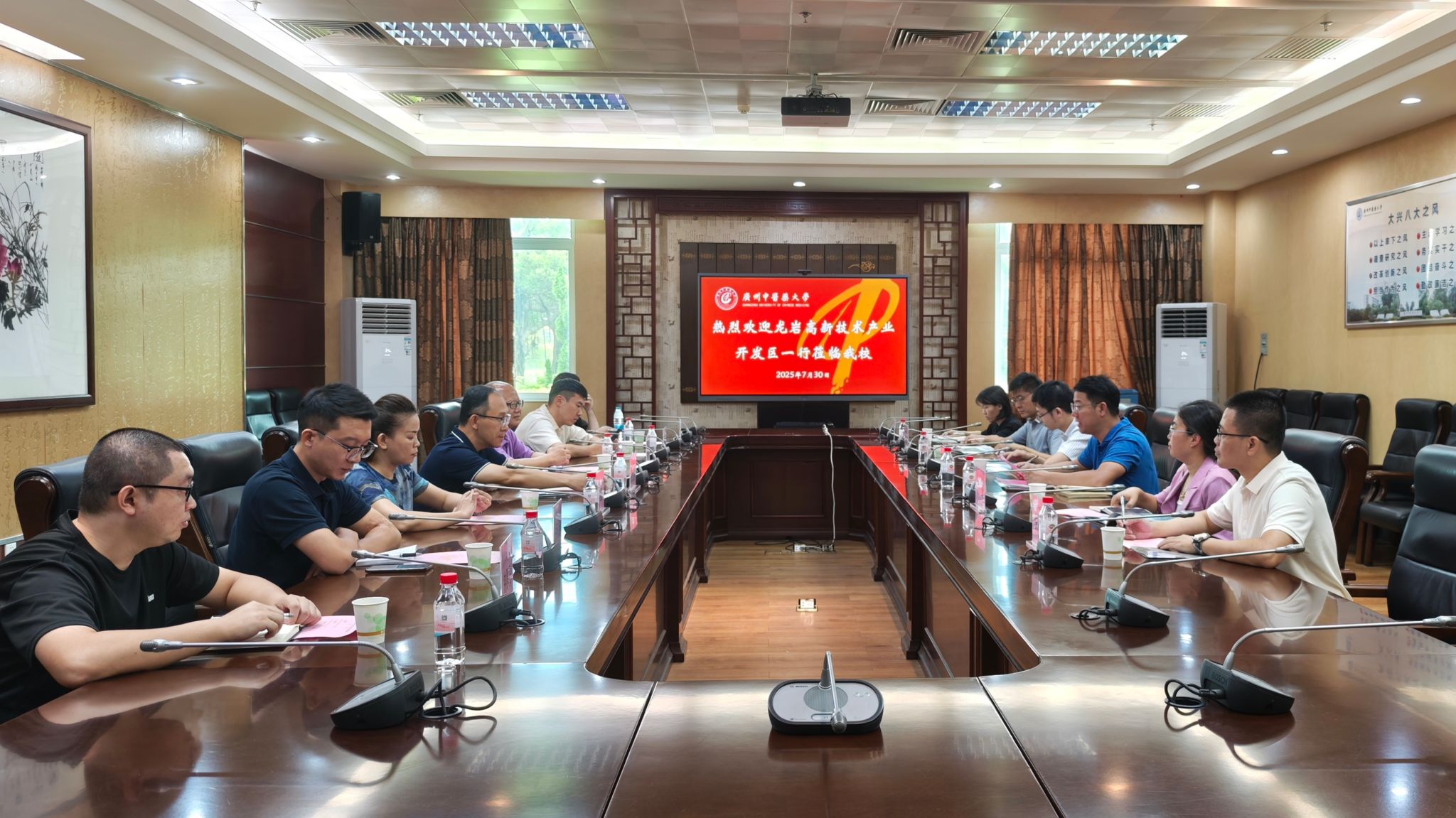 7月30日,福建省龙岩高新技术产业开发区(龙岩经开区)党工委委员、管委会副主任胡文刚率领大健康企业代表到我校考察交流,围绕深化产学研合作相关事宜进行座谈。