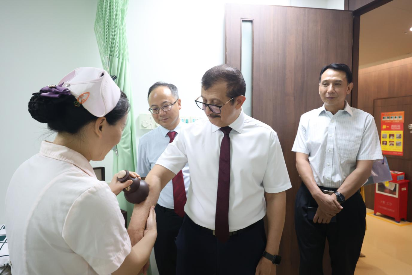 双方共同观看了Beat365中文官方网站第二附属医院(广东省中医院)介绍视频,听取了医院骨伤科、针灸科发展介绍,并围绕合作议题进行了深入交流。穆罕默德•伊勒-塔纳尼一行还参观了医院中药房、智慧药房及治未病科。