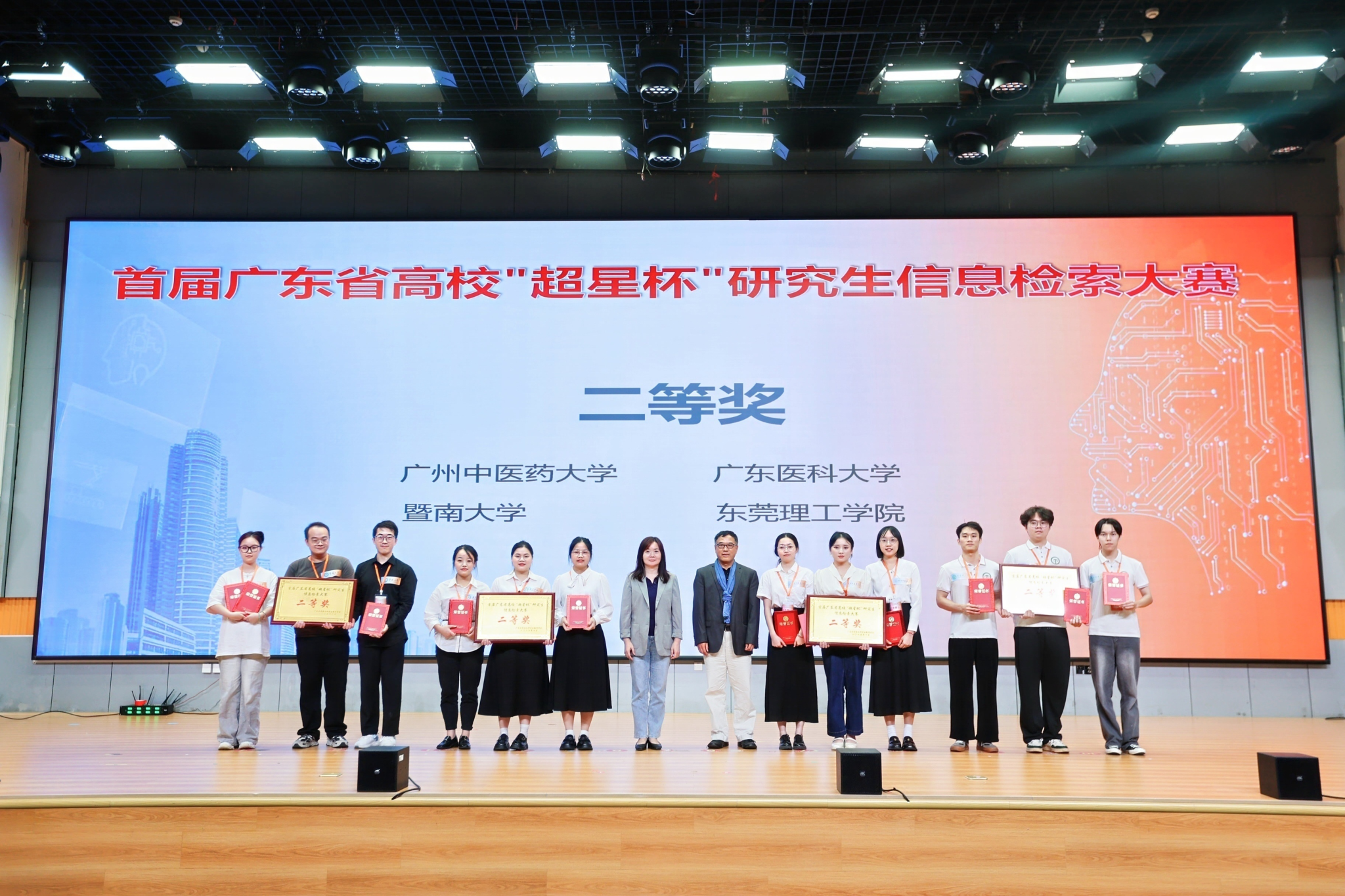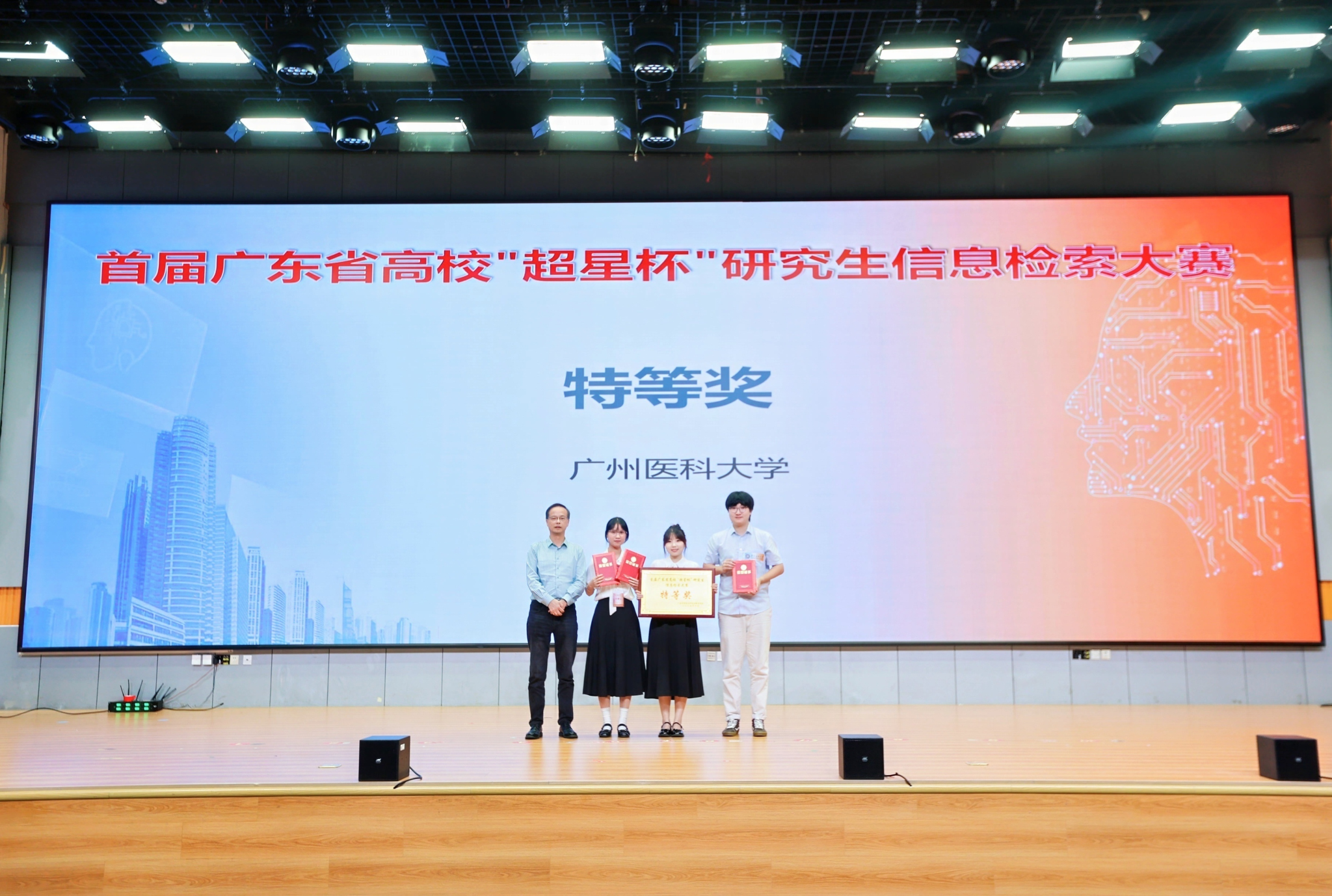 本次大赛采用“创新汇报+客观题测试”的双阶段赛制,既考察参赛队伍的创新应用能力,也检验其基础专业素养。赛制设计科学严谨,得到各参赛队伍的广泛认可。经过全天激烈角逐,最终广州医科大学大学拔得头筹,荣获特等奖;广东海洋大学大学、华南理工大学分获一等奖;Beat365中文官方网站、广东医科大学、暨南大学、东莞理工学院等4支队伍获二等奖;广东工业大学、广东药科大学、广东技术师范大学、广东财经大学、北京理工大学(珠海)等5支队伍获三等奖;仲恺农业工程学院、广州大学、五邑大学、佛山大学、广东金融学院、星海音乐学院6支队伍获优秀奖。18支队伍的指导教师获“优秀指导教师奖”。与会领导与专家为获奖队伍及教师逐一颁奖,现场掌声不断。