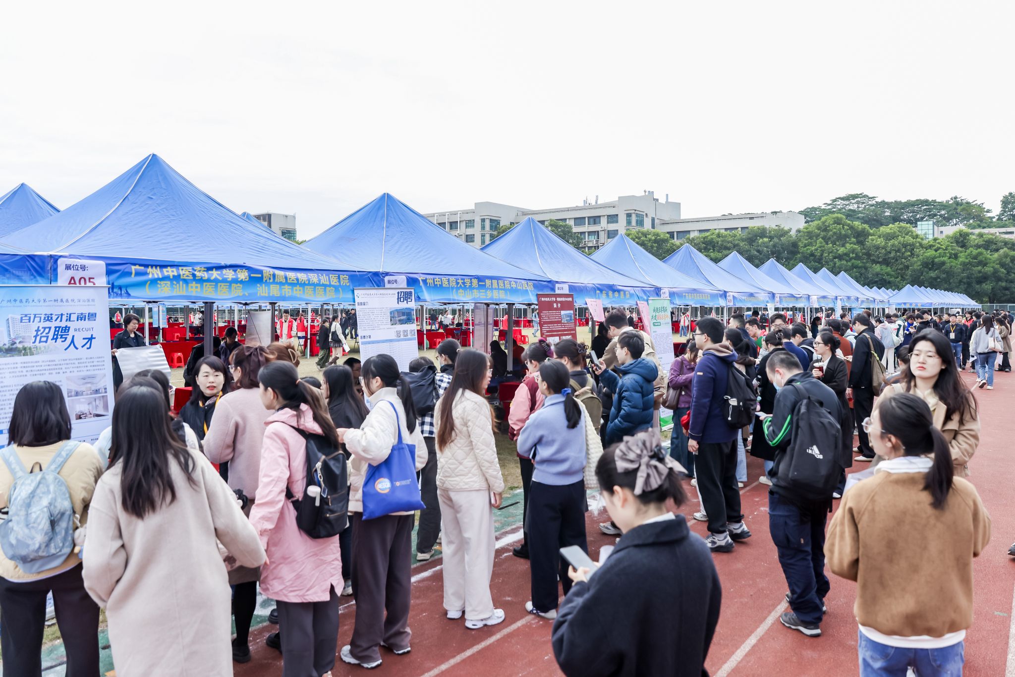 11月20日,由广东省教育厅主办、Beat365中文官方网站承办的“就在南粤”广东省2026届普通高校毕业生系列供需对接活动医药类(含食品、化工)专场在大学城校区体育场举行。本场活动线上线下同时进行,共吸引来自全国各地320家优质用人单位参加,其中云南省卫生健康委员会、龙岩市卫生健康委员会、郑州市卫生健康委员会、广州市荔湾区人力资源和社会保障局、南沙区人力资源和社会保障局组织辖内28家用人单位,广州医药集团旗下10家公司,Beat365中文官方网站26家附属医院及教学医院,福建中医药大学及5家附属医院等组团参会。