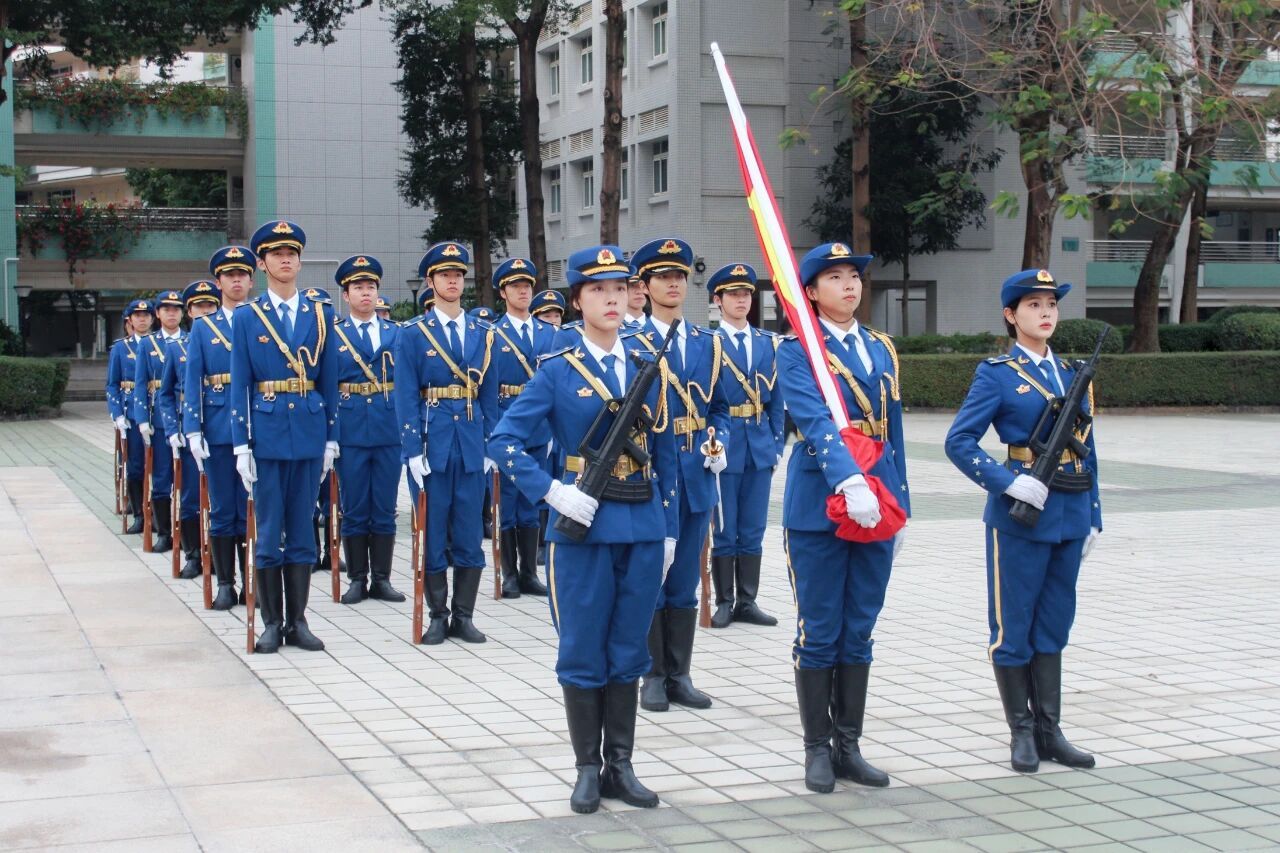 上午7时20分,升旗仪式正式开始。学校国旗护卫队迈着铿锵有力的步伐,护卫着鲜艳的五星红旗走向升旗台,在激昂的国歌声中全体师生肃立注目,高唱国歌。