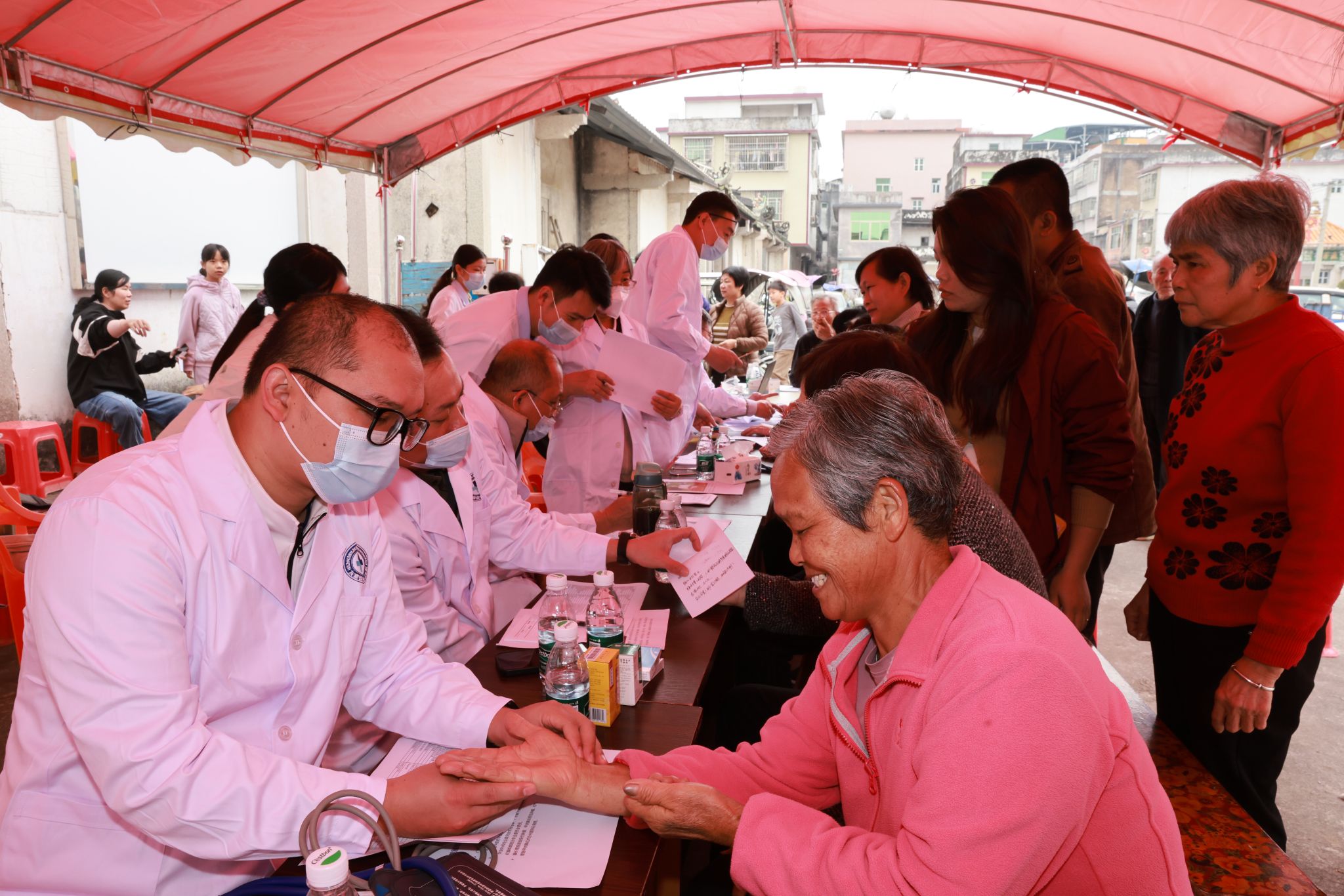 12月7日上午,义诊在钱坑镇红光村有序开展。通过前期宣传,钱坑及周边乡镇居民闻讯早早前来候诊。为保障沟通顺畅,钱坑镇卫生院专门安排懂潮汕话的医务人员担任翻译,协助专家与本地群众尤其是老年患者深入交流。专家团队细致开展问诊、体格检查、彩超诊断、处方开具、用药指导及针灸康复等特色服务,重点针对颈肩腰腿痛等常见病提供诊治方案,并为需进一步诊疗的群众预留便捷联系方式,协助其预约挂号与床位,减少群众往返奔波。农工党广药集团基层委员会向当地村委捐赠价值11000余元的常用药品,供义诊处方免费发放,切实减轻群众就医负担。卫生院同步为居民提供血压血糖检测、健康档案建立等公益服务。整场义诊过程秩序井然、氛围融洽,累计接诊约400人次,受到群众广泛好评。钱坑镇委委员俞燕金受镇委书记方淼生委托,专程到场慰问义诊专家。
