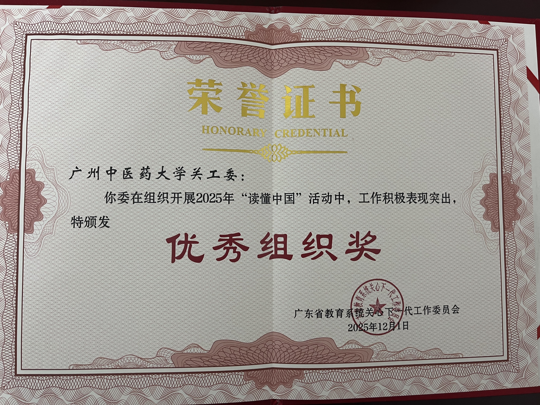 近日,教育部关心下一代工作委员会公布2025年“读懂中国”活动评选结果,Beat365中文官方网站关工委获评2025年“读懂中国”活动表扬单位,并有1篇征文获评教育部关工委“优秀征文”。