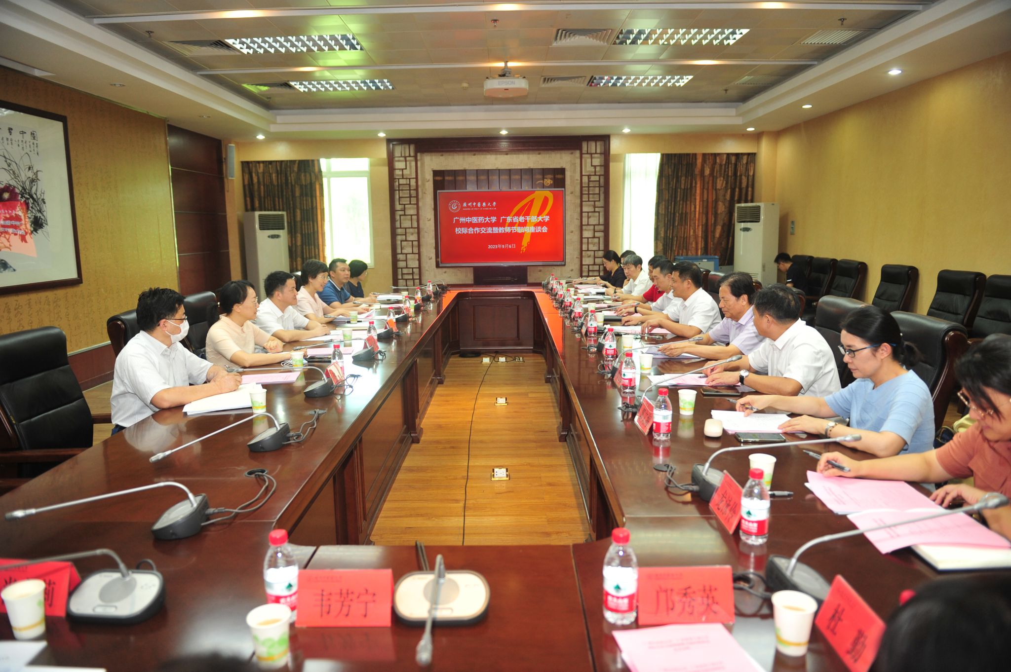9月6日,广东省委老干部局副局长曹永中,带领广东省老干部大学校长蒋海鹰等一行,到学校开展校际合作交流暨教师节座谈会。学校党委副书记邱亚洪主持会议。