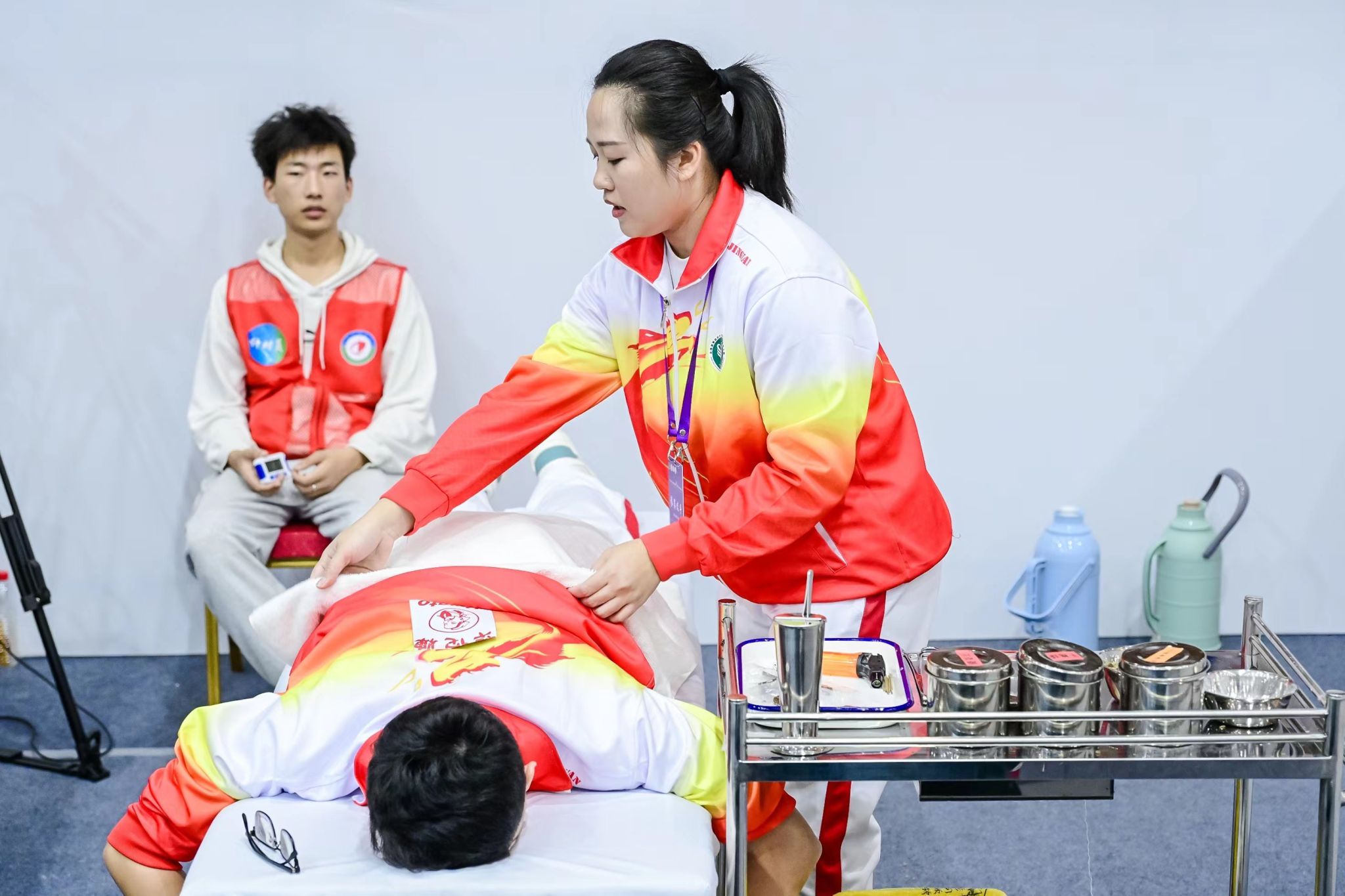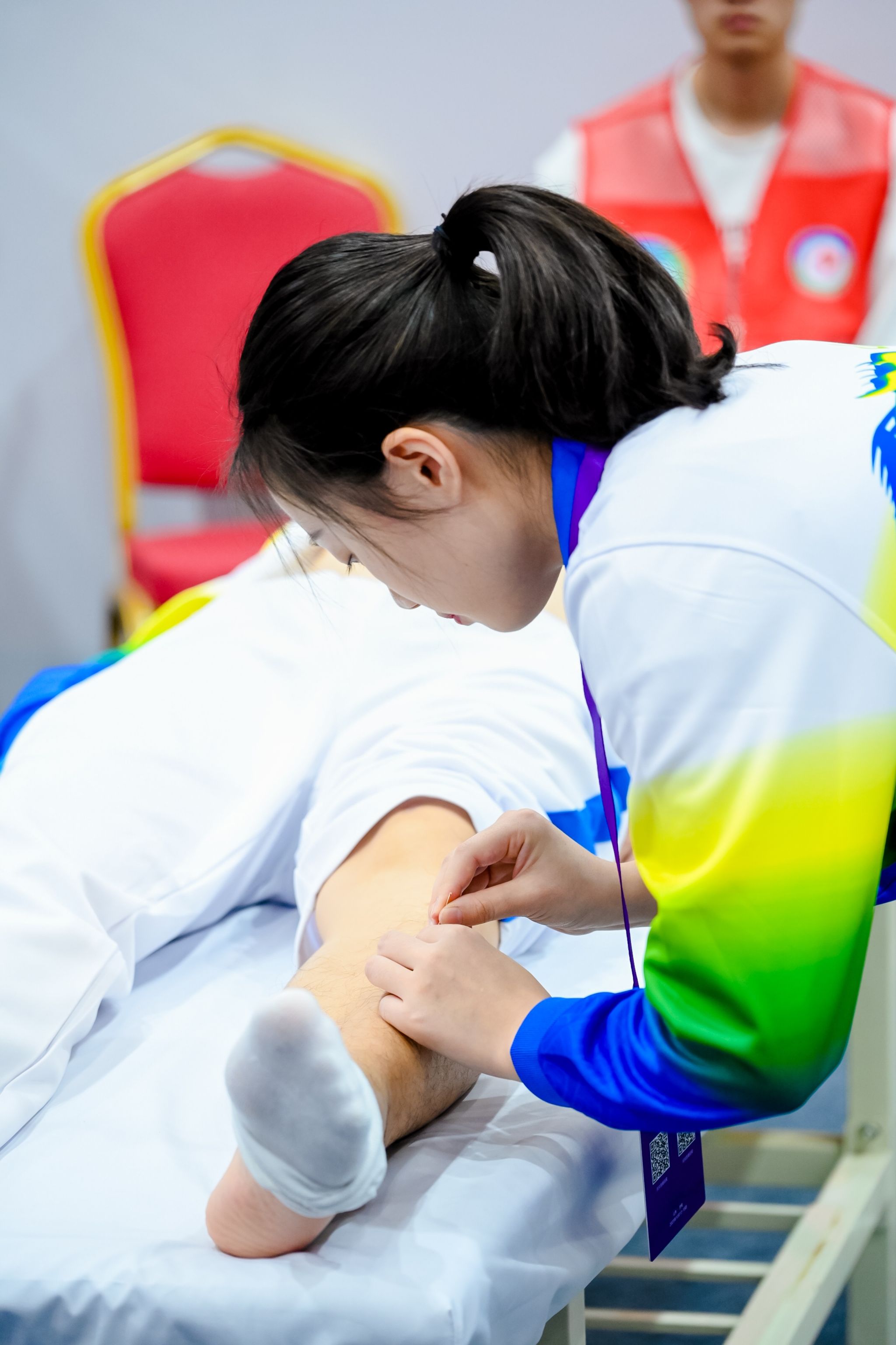 赛前,学校领导多次关心指导,明确“以赛促学、以赛促教、以赛促训、以赛育人”的参赛目标。在教务处、国际学院等相关职能部门的协调下,针灸康复临床医学院与附属医院凝心聚力、全力以赴。备赛期间,针灸康复临床医学院选派优秀教师对参赛选手进行集训,指导老师们充分利用暑期和节假日时间,带领参赛选手刻苦训练、磨炼技能。竞赛期间,我校参赛选手扎实的理论功底、娴熟的技能水平,集中体现了我校“重经典、强临床”人才培养模式的教学成果;我校参赛团队大气从容、沉着自信的精神风貌,展示了新时代广中医青年的青春风采。