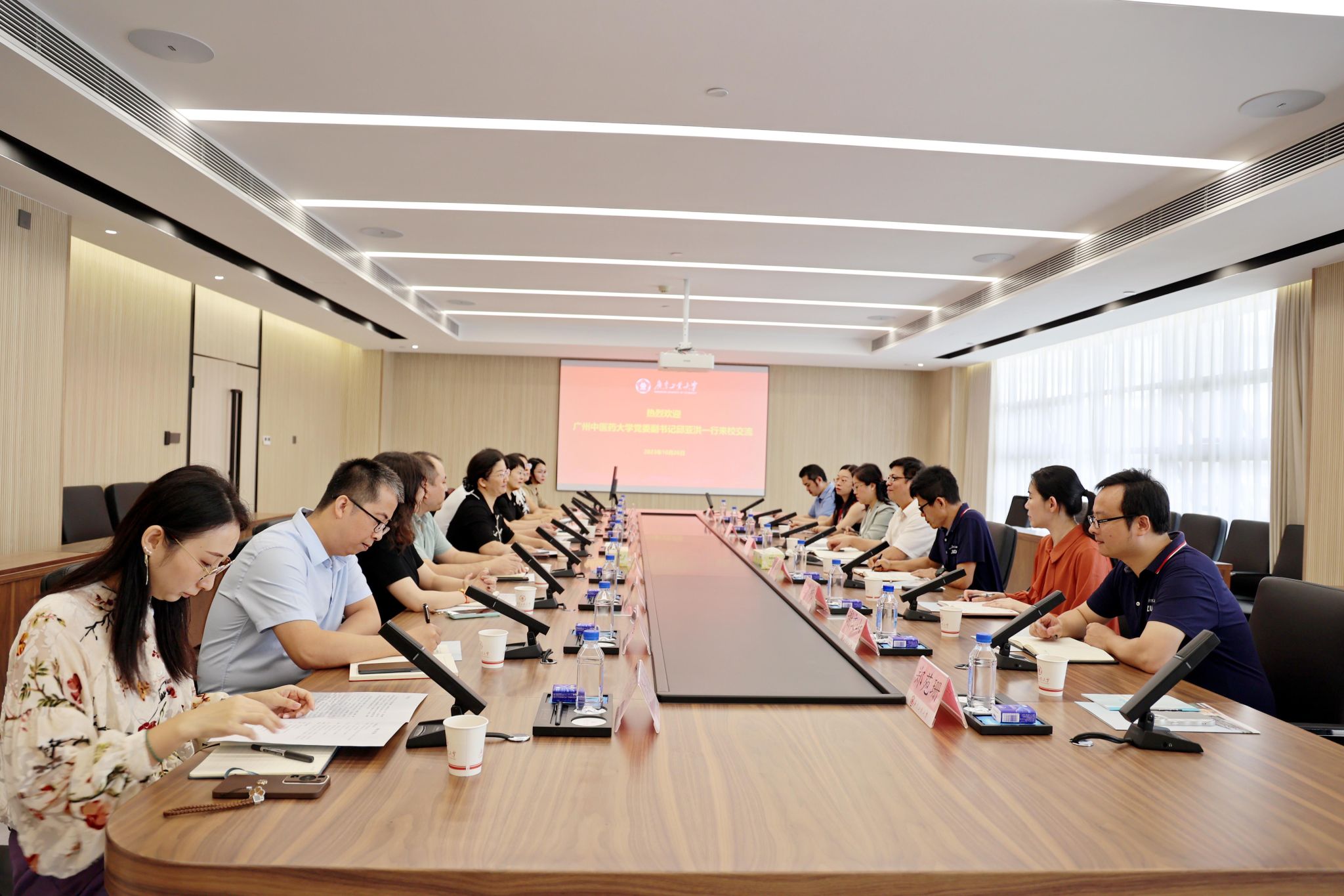 10月26日上午,Beat365中文官方网站党委副书记邱亚洪带领学校党委宣传部统战部全体同志到广东工业大学调研交流。广东工业大学党委副书记朱蔚蔚,广东工业大学党委常委、党委宣传部部长张育广一起交流。
