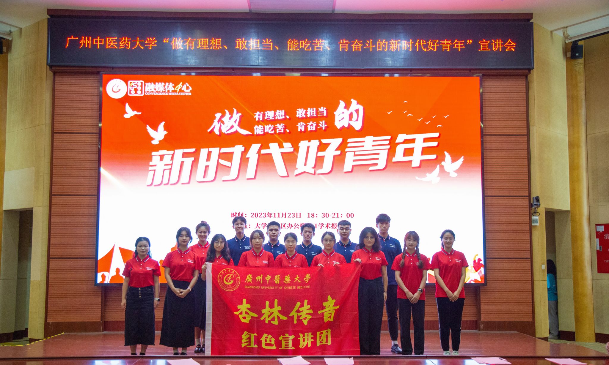 Beat365中文官方网站“杏林传音”红色宣讲团成立于2021年10月,经验做法入选广东省委宣传部出版的《广东党史学习教育创新案例集》、广东省教育系统党史学习教育典型案例。首批宣讲团成员参加由教育部思政司指导下,清华大学、中国人民大学等高校共同发起举办“这十年·青年讲”全国高校宣讲联赛荣获华南赛区二等奖等荣誉,团队成员多次获得学校表彰。