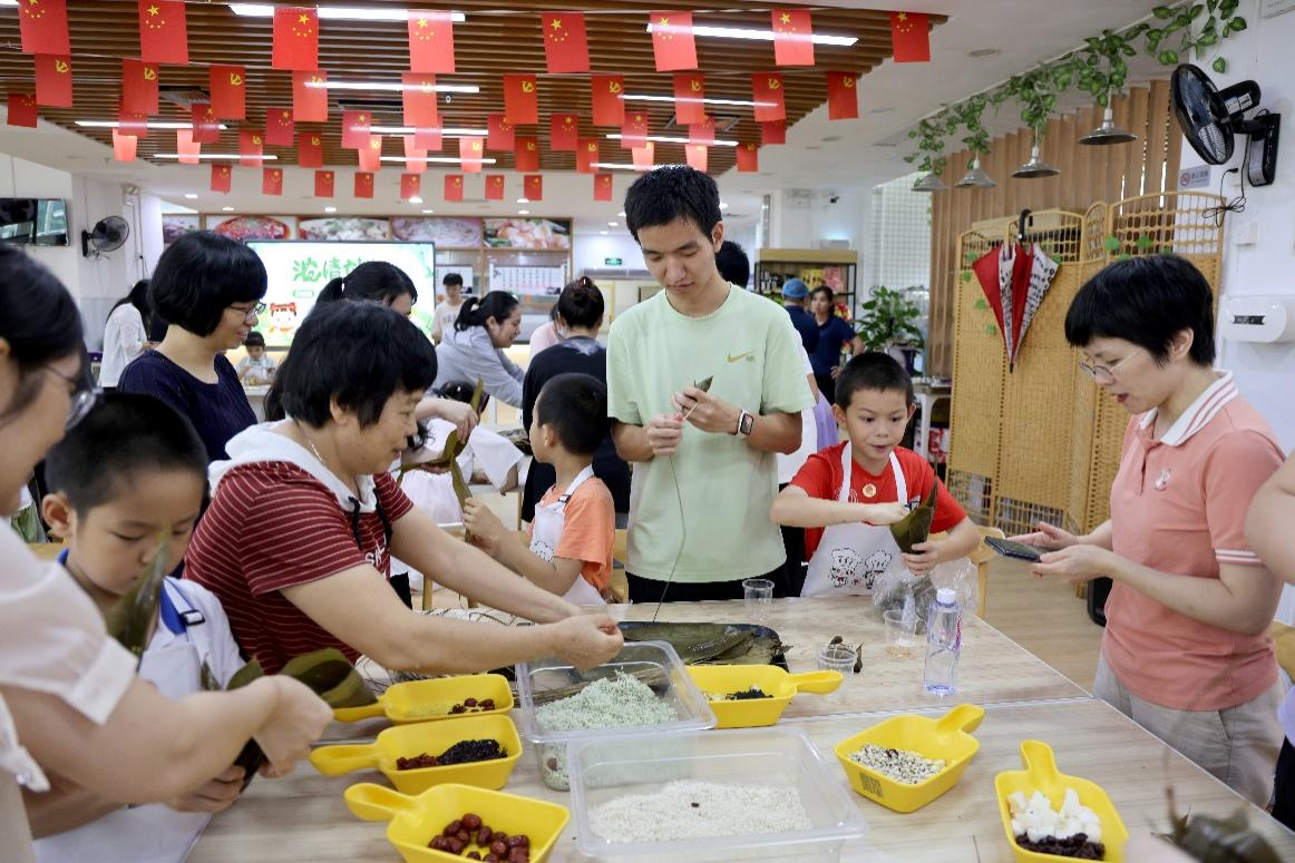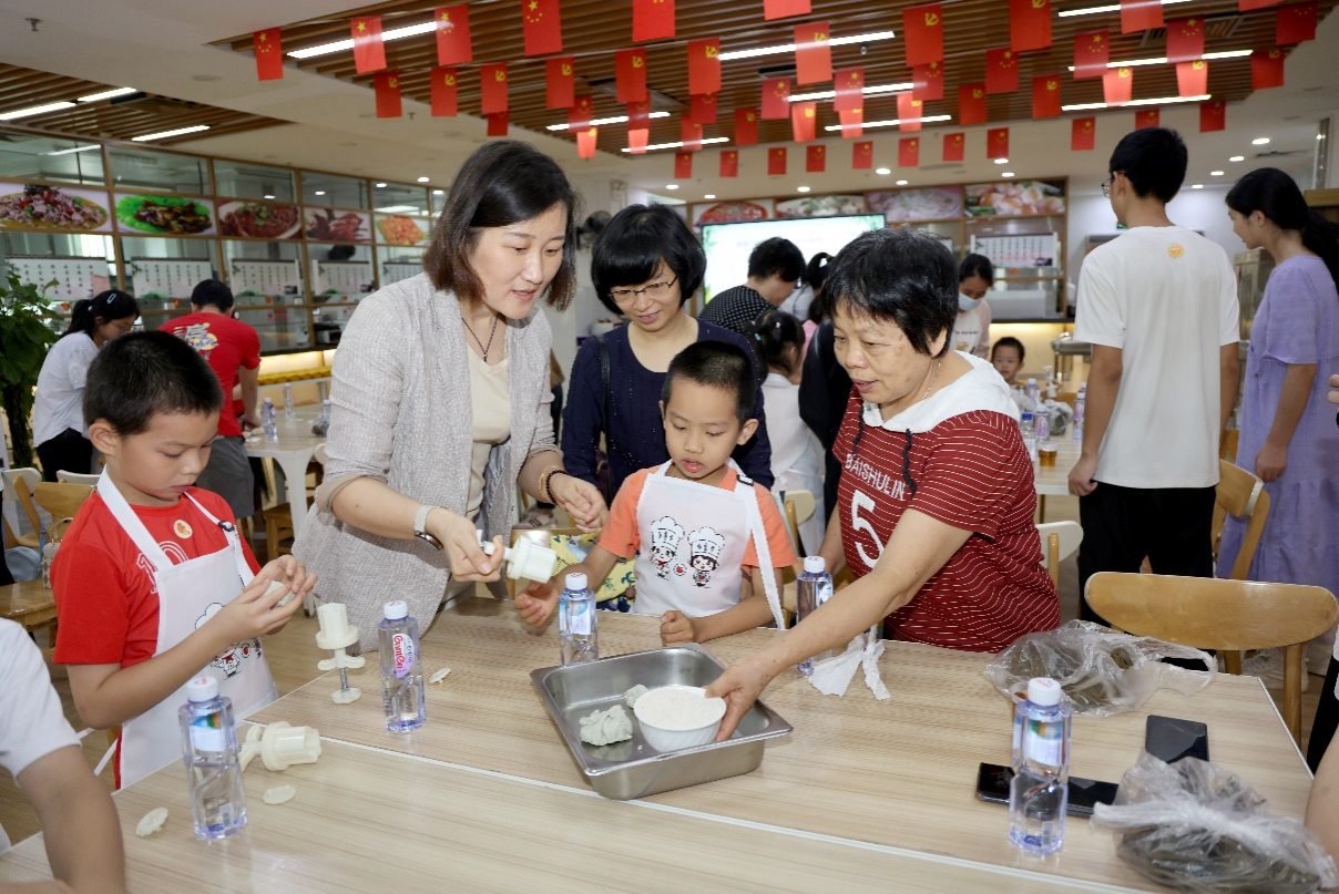 5月25日上午,基础医学院工会、后勤工会举办了“迎端午养生粽子养生糕合家欢DIY”活动,中医养生与预防医学系路艳老师和学生们把中医治未病的理念、中医食疗的知识深入浅出地带给孩子们,在饭堂面点师傅们指导下,一起制作“大养脾胃”的八仙长寿糕。