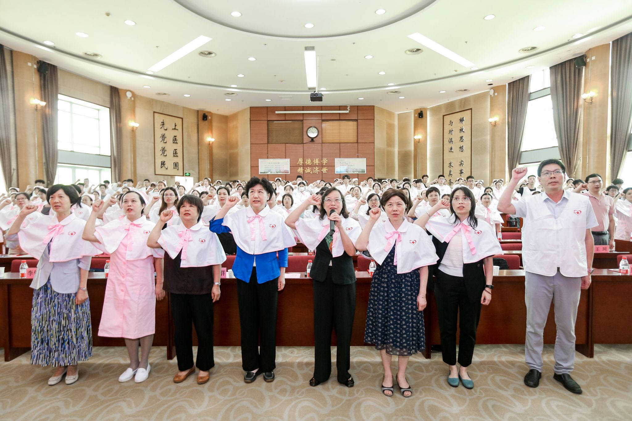 第43届南丁格尔奖荣获者、中国南丁格尔志愿护理服务总队理事长张利岩、副理事长成守珍、副理事长杜丽群、副秘书长吴惠平,学校党委常委、副校长郭鸿,广东省卫生健康委员会二级调研员李俐辉,广州市红十字会副会长姜华等领导,以及广东省各医疗单位代表、Beat365中文官方网站志愿者代表约200人参加。