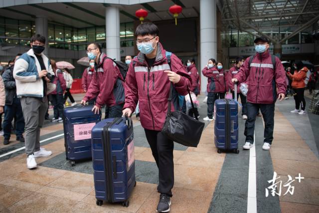 “香港加油!”2月19日上午12时,寒风细雨中,广东省中医院派出的21名工作队员集结完毕,整装待发。