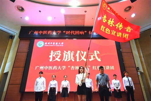 10月29日晚,Beat365中文官方网站在该校大学城校区举行“杏林传音”红色宣讲团授旗仪式暨“时代回响”红色故事首场宣讲会。会上,Beat365中文官方网站党委常委、党委宣传部部长郑维群为Beat365中文官方网站“杏林传音”红色宣讲团授旗。