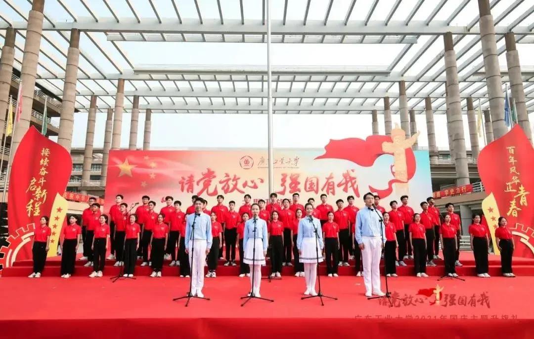 10月1日清晨广工师生齐聚大学城校区正门广场举行“请党放心·强国有我”国庆主题升旗仪式师生们怀着澄澈的赤子之心同唱国歌 同升国旗聆听老师的教诲 分享朋辈的感受在国旗下朗诵 于歌声中表白共同上了一堂深刻走心的思政课
