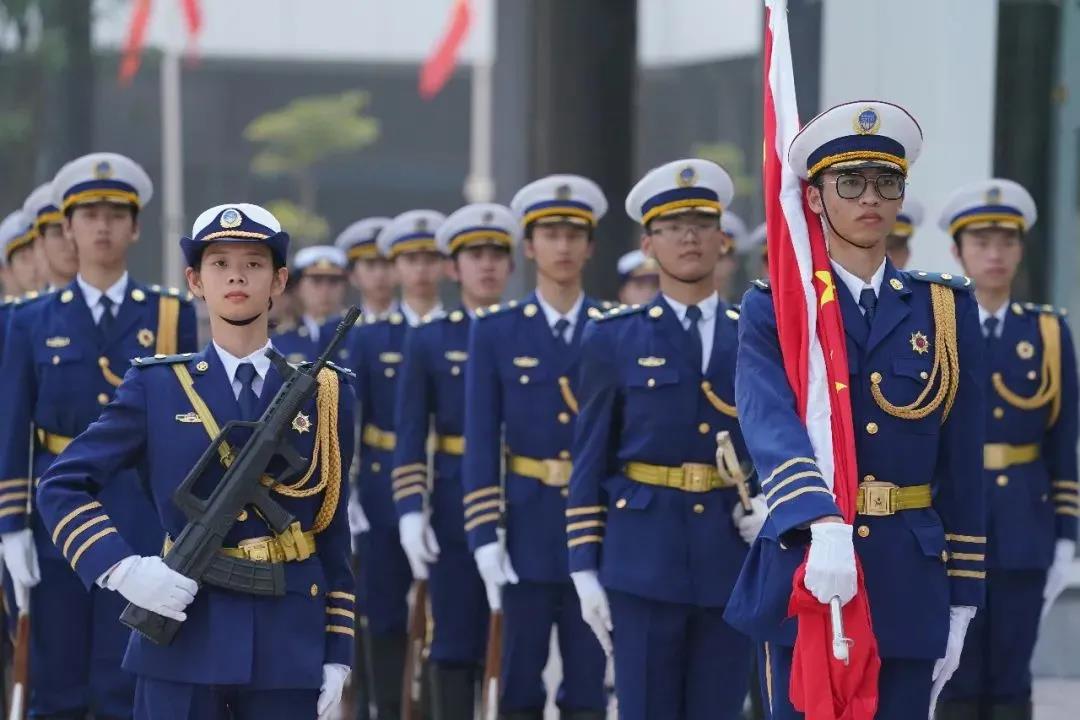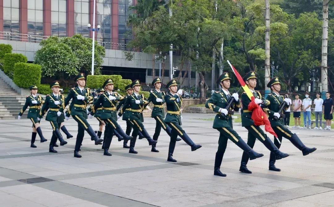 深技大学子在新校园里举行隆重的国庆升旗仪式
