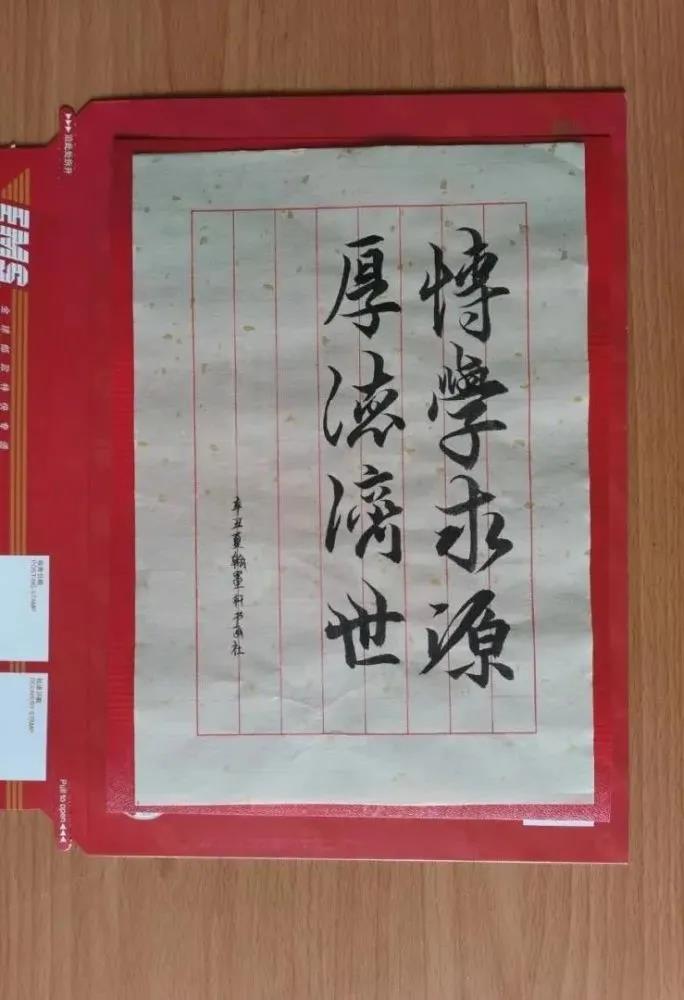 河北中医学院的录取通知书以红色为底色,其中还附上了由学校翰墨轩书画社四届社员书写的八字校训。犀利的瘦金,凛然的颜体,率意的行书、工整的隶书……都寄托了学校对各位新同学美好的期许。