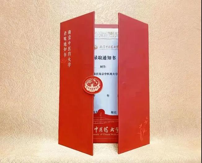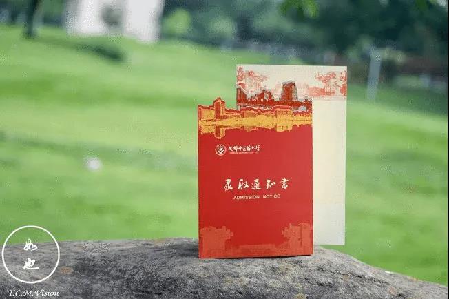正红的封面,浓浓的国风,一片的红印着金黄倒影,远观如金红墨染出的国风画卷,近看是点滴细致描绘的校园。录取通知书带给学子们的,不仅仅是录取的喜悦,更有对中医药事业的热和传承中医药文化的决心。