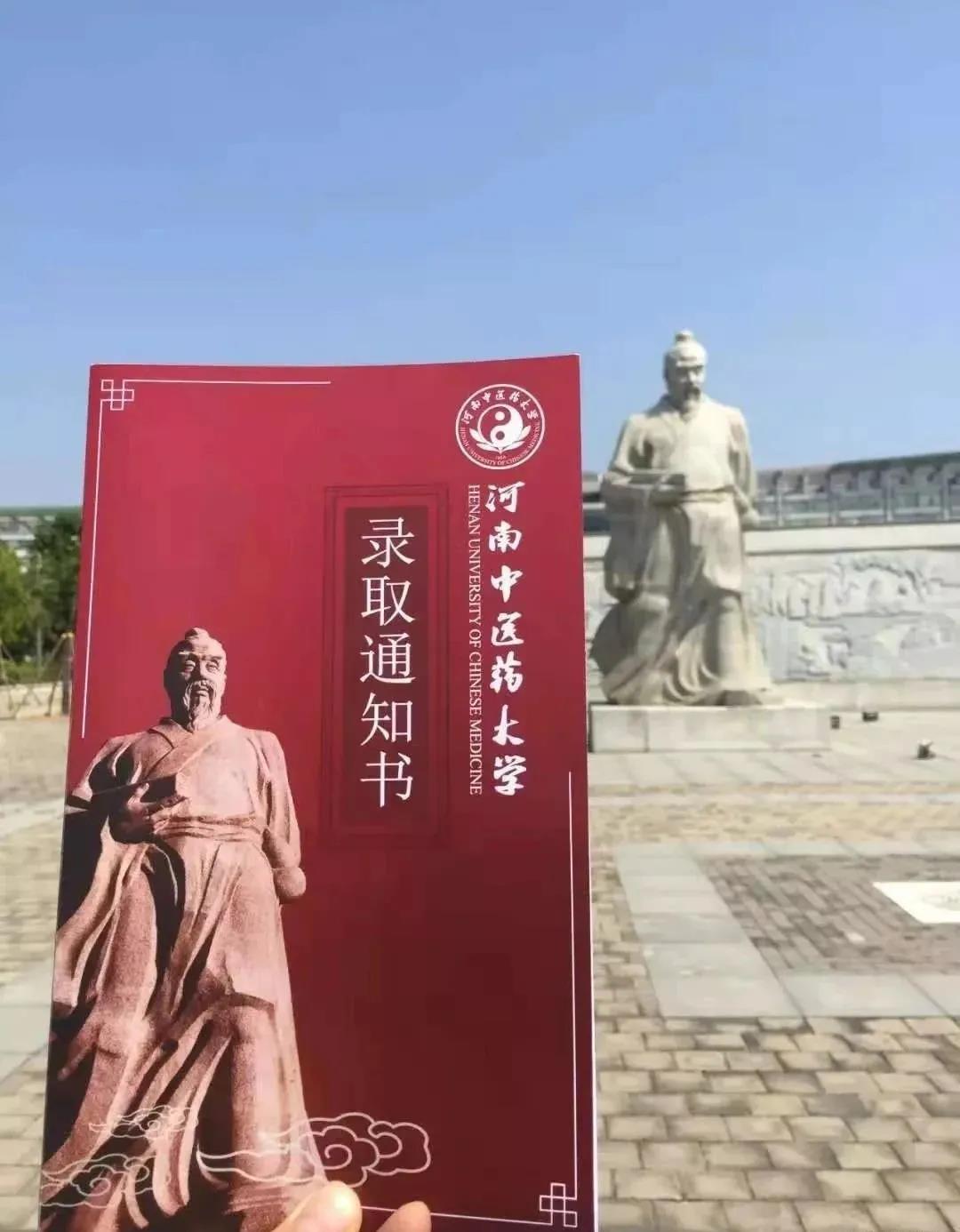 通知书采用温暖暗红渐变色上叠加中国传统祥云纹样,寓意着吉祥。医圣张仲景像,突出了中医药大学的特性。