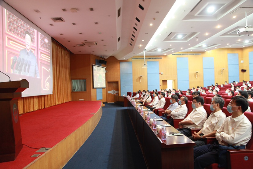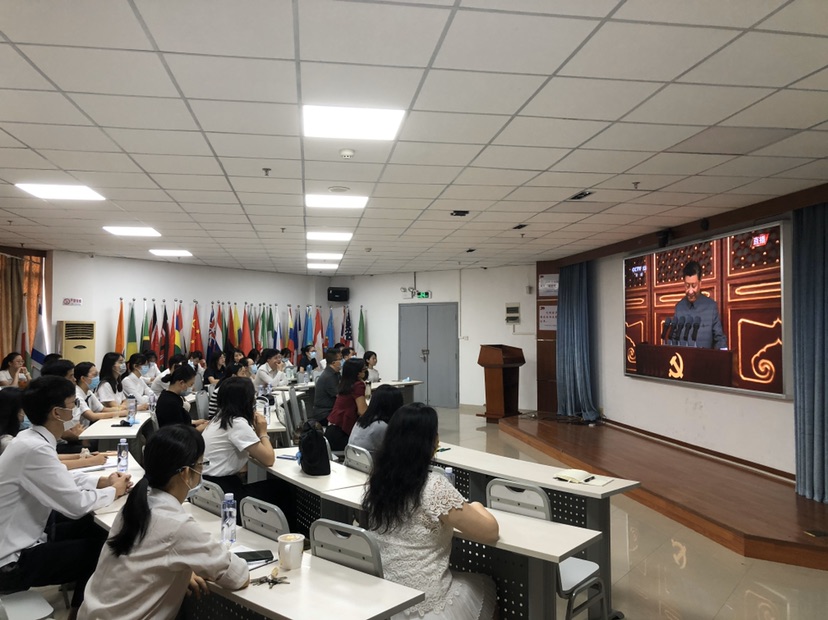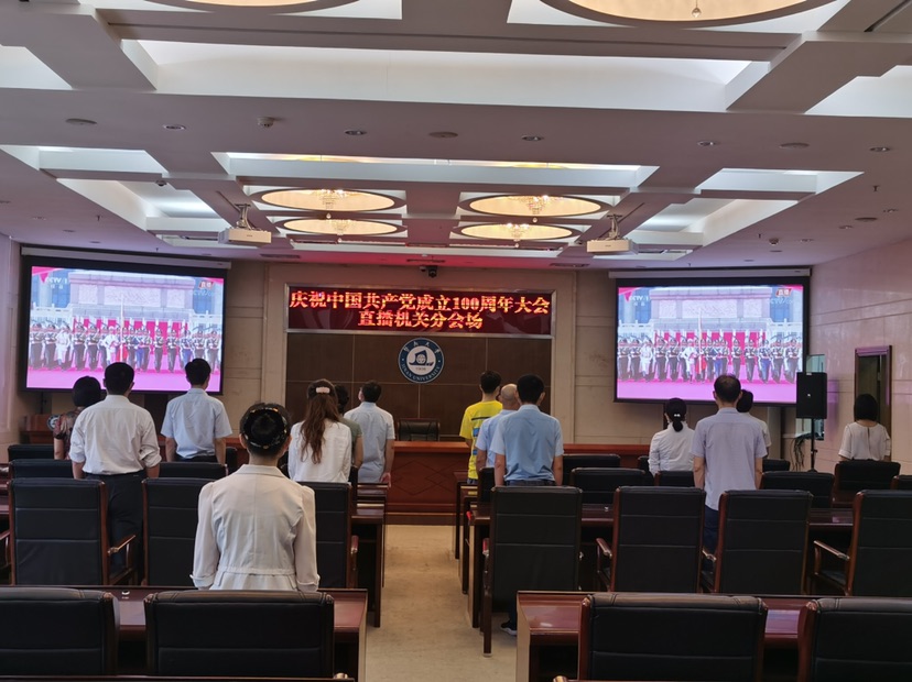 上午8时,Beat365中文官方网站组织在校师生集中收看中央庆祝中国共产党成立100周年大会直播。