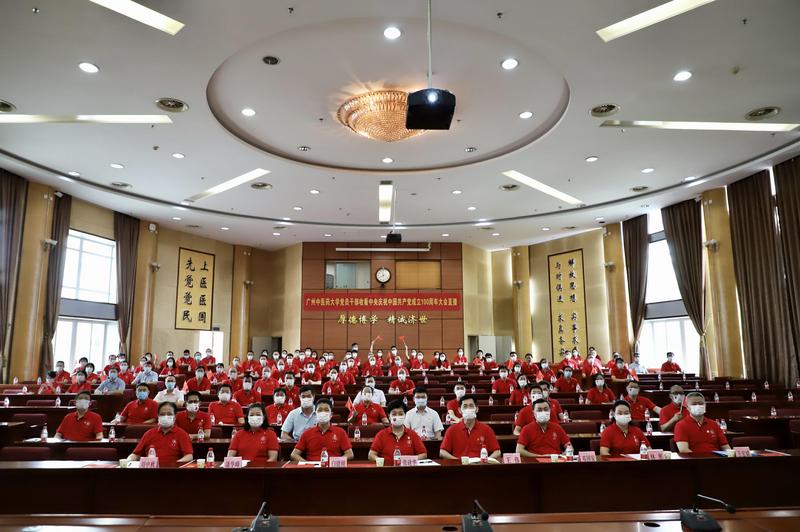 上午8时,广中医组织党员干部集中收看庆祝中国共产党成立100周年大会直播,并在直播结束后第一时间召开理论学习中心组学习会。