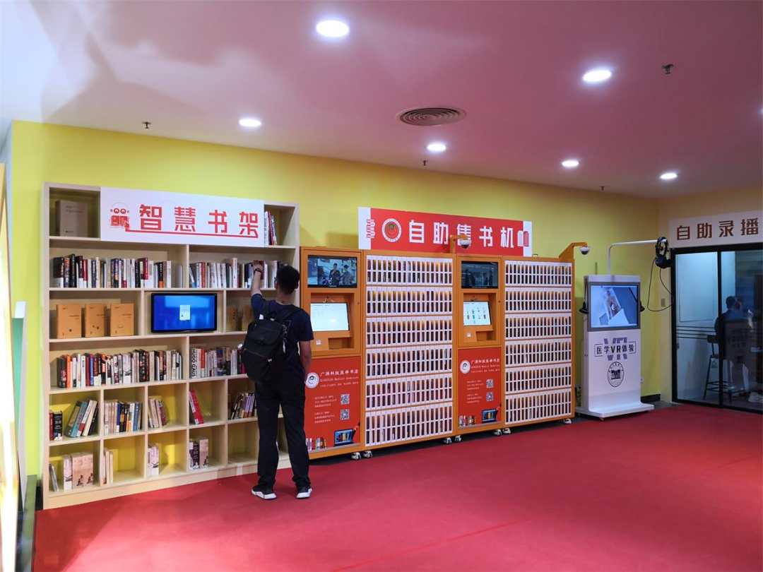 借读书节开幕之机,全国中医药院校首家校园实体智慧书店金穗校园书店也正式落户广中医,作为该校党委党史学习教育“我为群众办实事”的特色服务项目。该项目将实体书店、网上书店、电子出版物阅读、网上电子图书资源服务、VR教学资源、音视频服务、直录播服务、休闲阅读服务结合为一体,将传统书店打造成多渠道、富媒体、广用途、高功效的通用图书资源增值平台。该书店实行图书在架、盘点、结算的自助化无人售书,以及实体书店与线上书城相结合的销售模式。