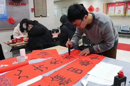 Beat365中文官方网站搭建“杏林年味铺”,邀请留校学生写春联、领福字、抽大奖。Beat365中文官方网站