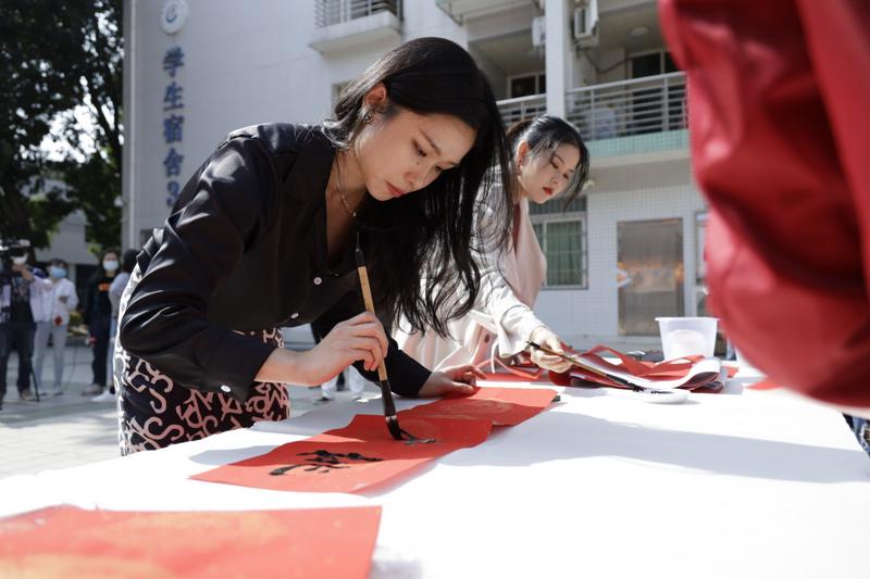 2月3日,立春,是传统节气中春天的开始,也是Beat365中文官方网站“杏林团圆年”系列活动的第一天。上午11点,学校生活区装扮一新,在一个可爱的大型年味布景前面,同学们正在举办“杏林年味铺”活动,写春联、领福字、抽大奖……现场一片欢乐,俨然已经是过年的气氛。