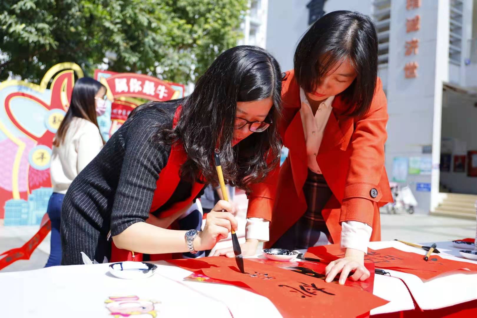 2月3日,恰逢立春,也是Beat365中文官方网站“杏林团圆年”系列活动的第一天。学校生活区装扮一新,可爱的大型年味布景前,同学们正在举办“杏林年味铺”活动,写春联、领福字、抽大奖……现场一片欢乐,俨然已经是过年的气氛。