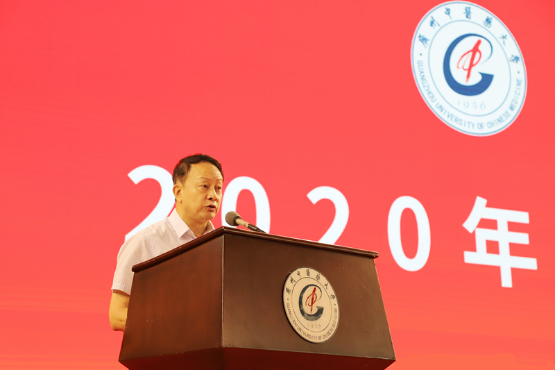 典礼上,校长王省良以《胸怀家国 绽放青春》为题作开学致辞,他指出,2020年学校正式成为广东省人民政府、教育部、国家中医药管理局共建单位,学校将迎来新的飞速发展。