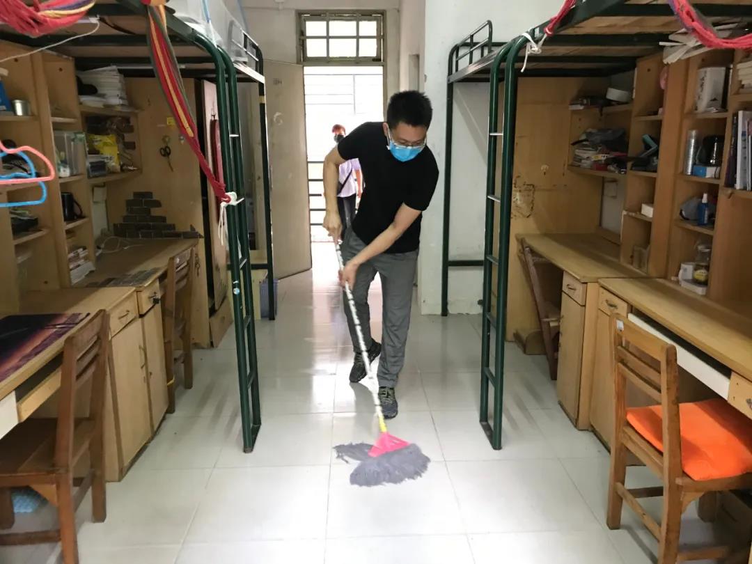 南海校区的清扫消毒工作也紧跟步伐,检查会议室、报告厅、教室和厕所等公共环境卫生,重点关注学生宿舍,实时跟进值班室、宿舍卫生及返校后学生宿舍活动等情况。