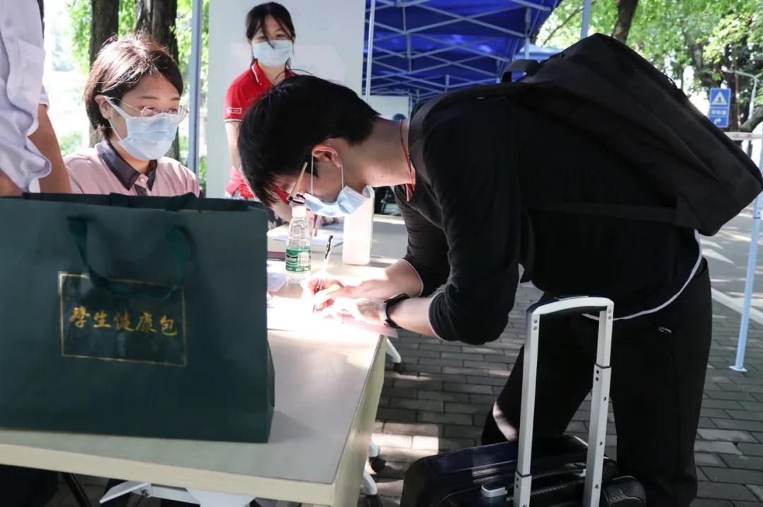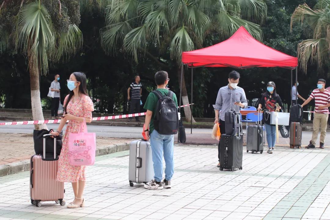 学校在返校报到点还设置了行李消毒区、洗手区、口罩更换区、临时隔离等候区和应急处置区等,为同学们的健康安全保驾护航。为方便学生搬运行李,各校区(园)还安排了接驳车将学生送返宿舍。学生到达宿舍后由宿管员根据返校名单进行身份核验后即可入住。