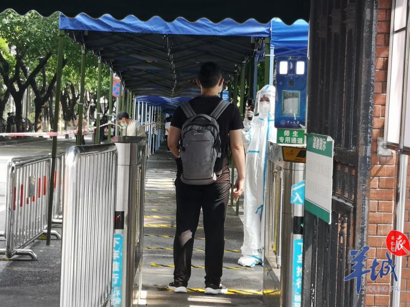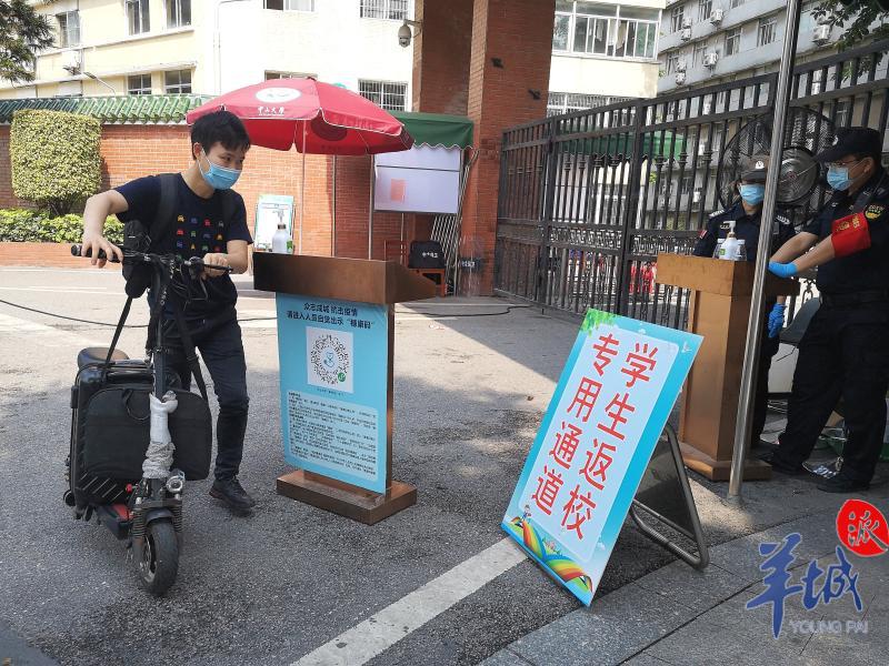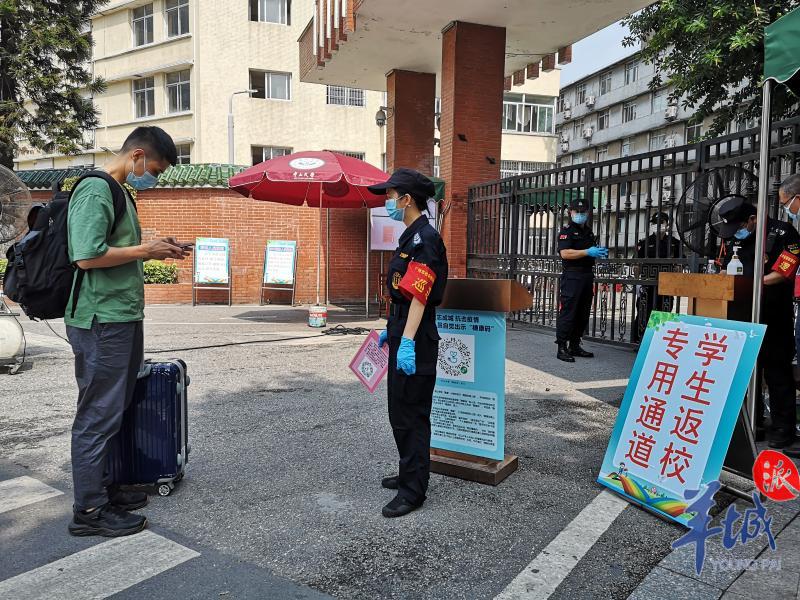 记者走访中大、广中医、广医等高校发现,学校均专门设置了返校通道、报到点等,工作人员有序查验学生的校园卡、校验身份,医生测量体温,民警站岗协助维护秩序。