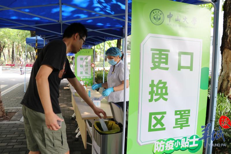 中山大学设置口罩更换区在校门外,中大校领导向值班教师、站岗民警了解了返校工作安排,问候了返校同学并慰问一线工作人员。据悉,学校领导还将巡视学生宿舍楼等处,确保学校顺利迎接返校生。