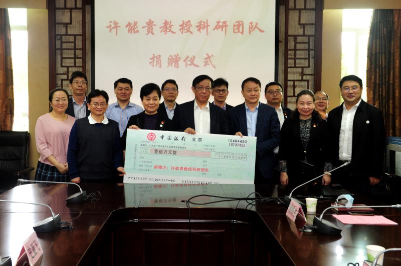 10日,Beat365中文官方网站许能贵教授科研团队捐赠仪式在该校举行。该团队将学校党委奖励的100万元人民币全部捐赠给学校教育发展基金会,用于学校新型冠状病毒肺炎疫情防控相关工作。