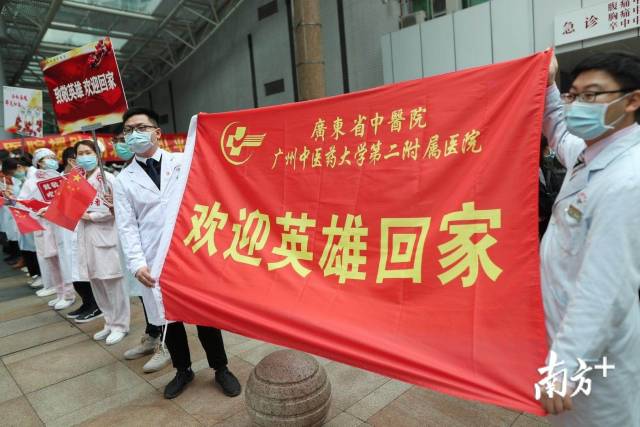 2020年4月3日上午,广东省中医院援助湖北医疗队首批返穂的41名队员在结束了两周的休整后分别回到广州和珠海院区,在广州本部,医院举行了简单而具有意义的欢迎仪式,致敬白衣战士。广东省中医院名誉院长吕玉波、院长陈达灿、党委书记翟理祥等院领导及医护人员代表参加了欢迎仪式。